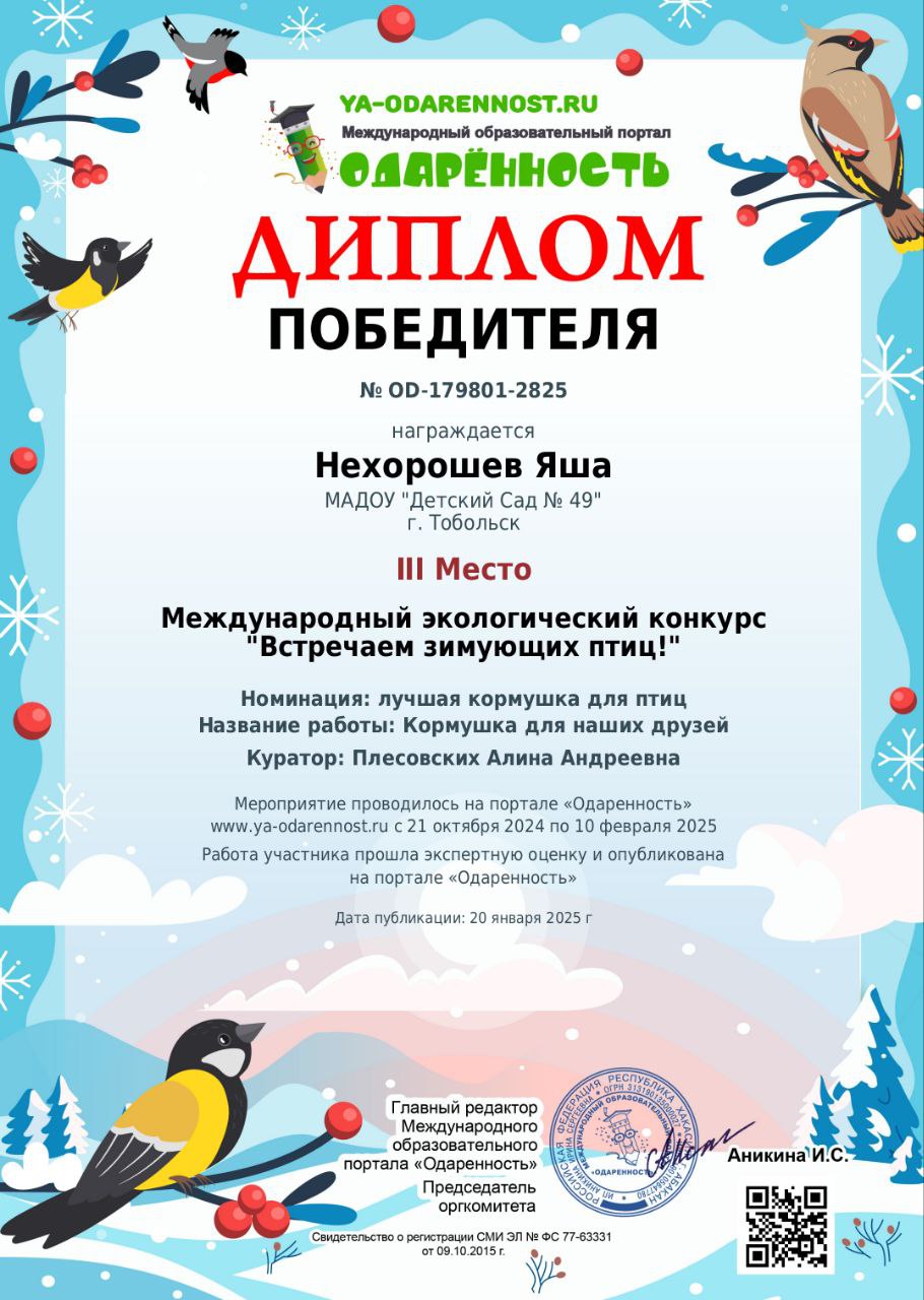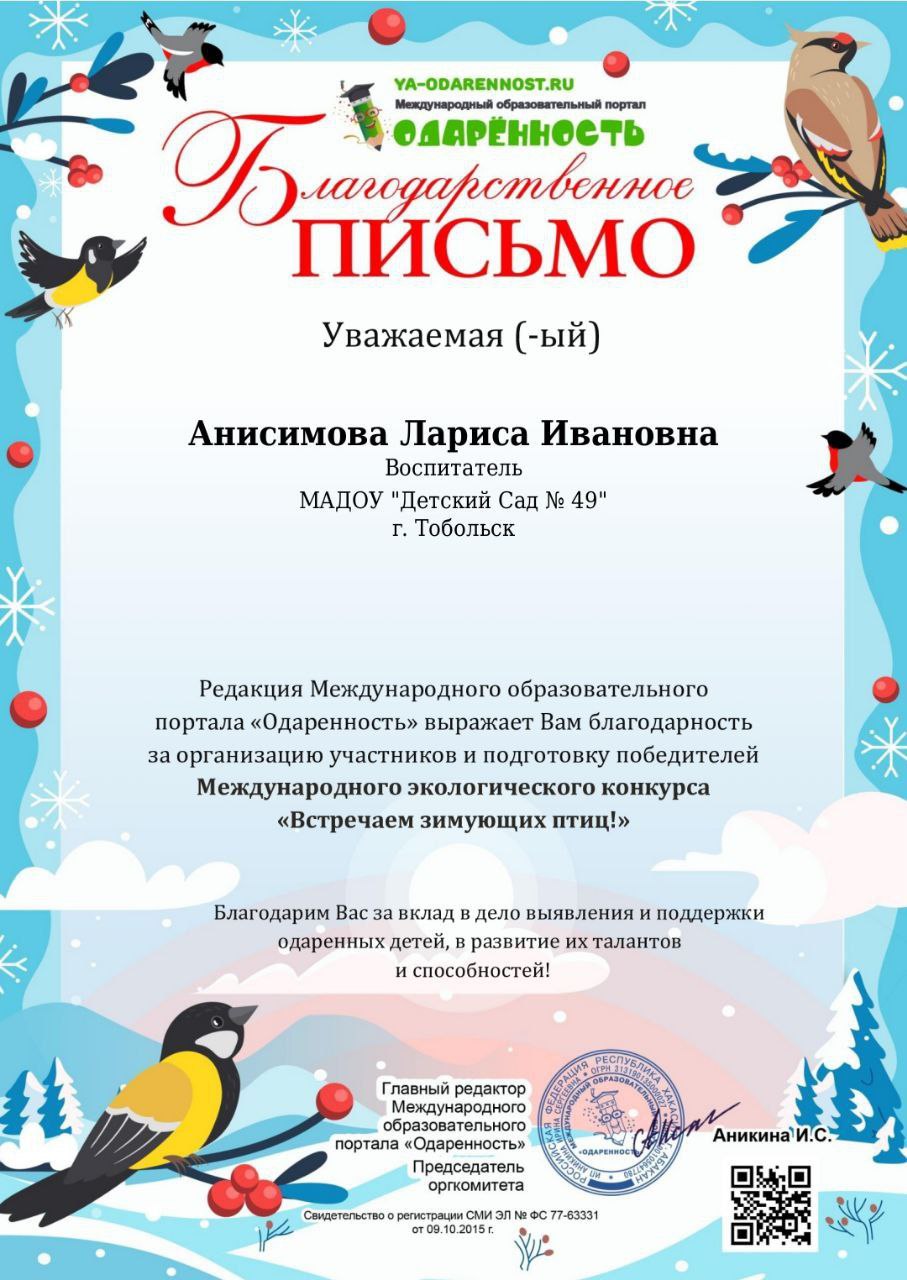 Международный экологический конкурс "Встречаем зимующих птиц!"