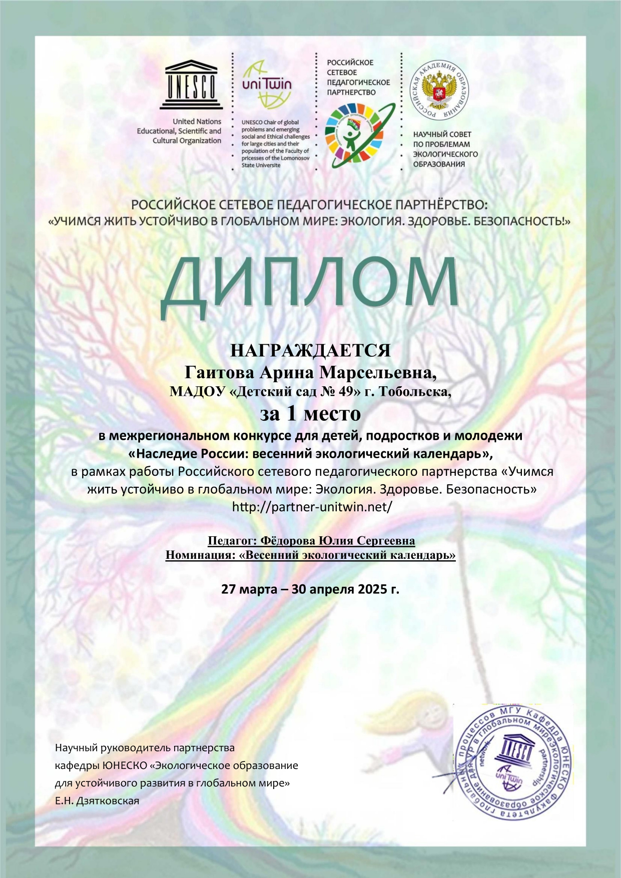 Межрегиональный конкурс для детей, подростков и молодежи "Наследие России: весенний экологический календарь"