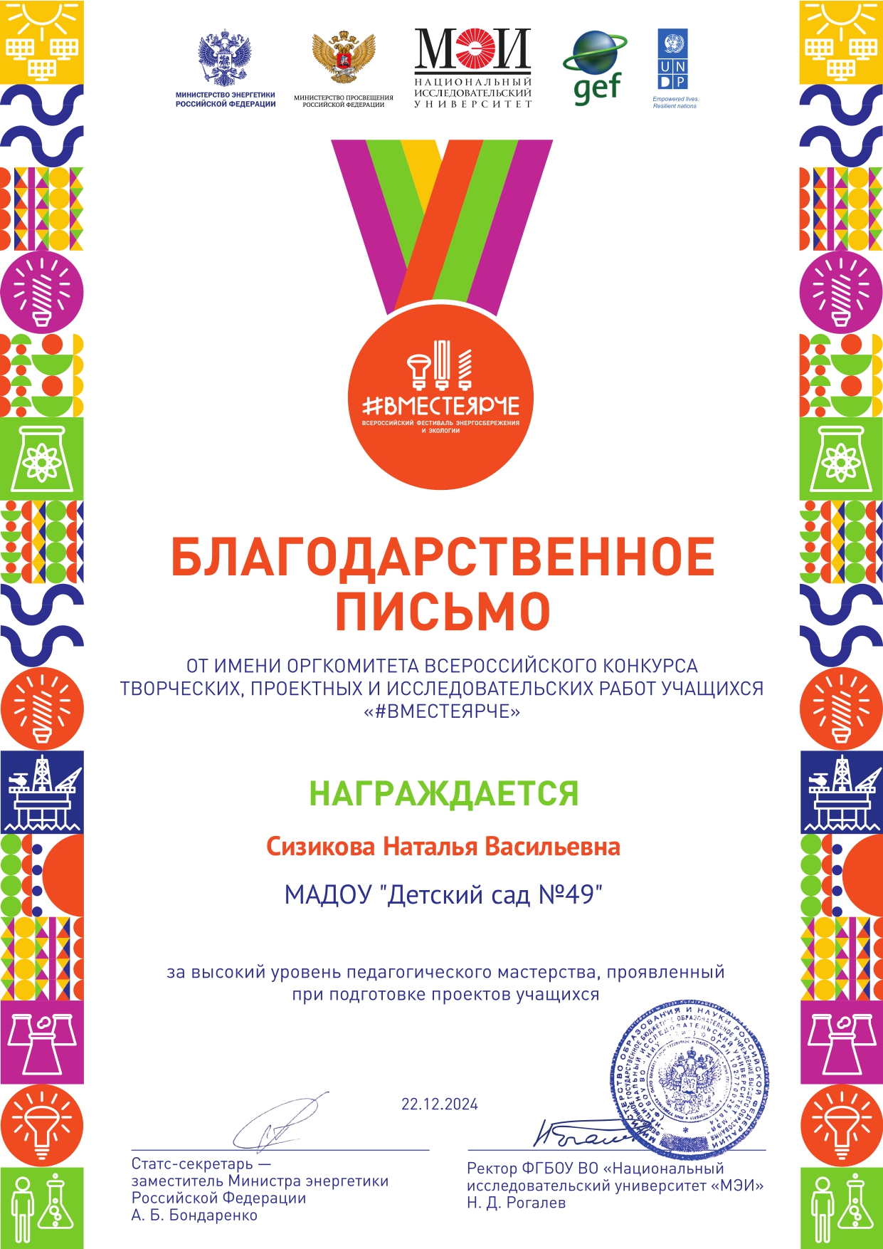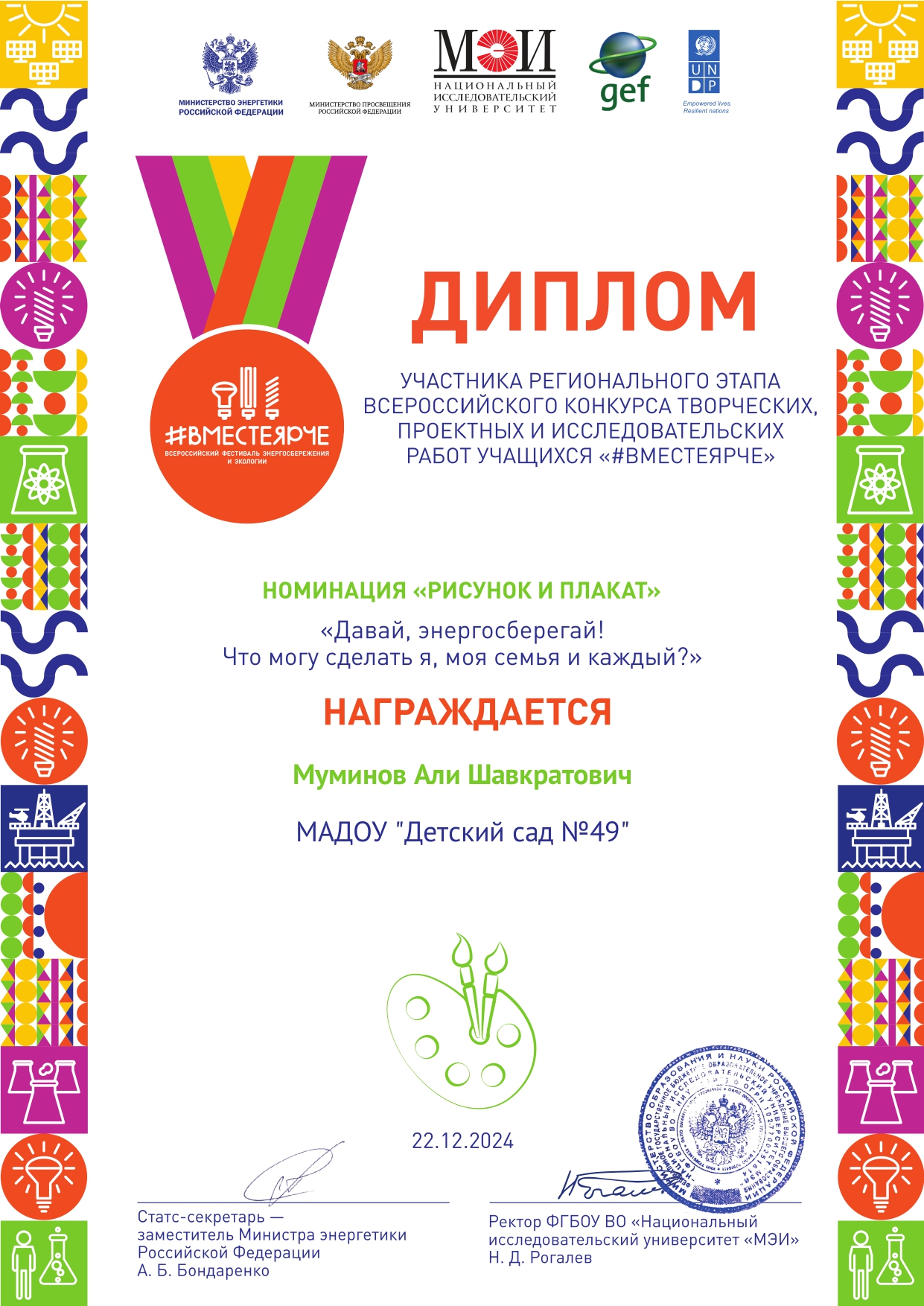 Региональный этап всероссийского конкурса творческих, проектных и исследовательских работ "#ВМЕСТЕЯРЧЕ", номинация "Давай, энергосберегай. Что могу сделать я, моя семья и каждый"