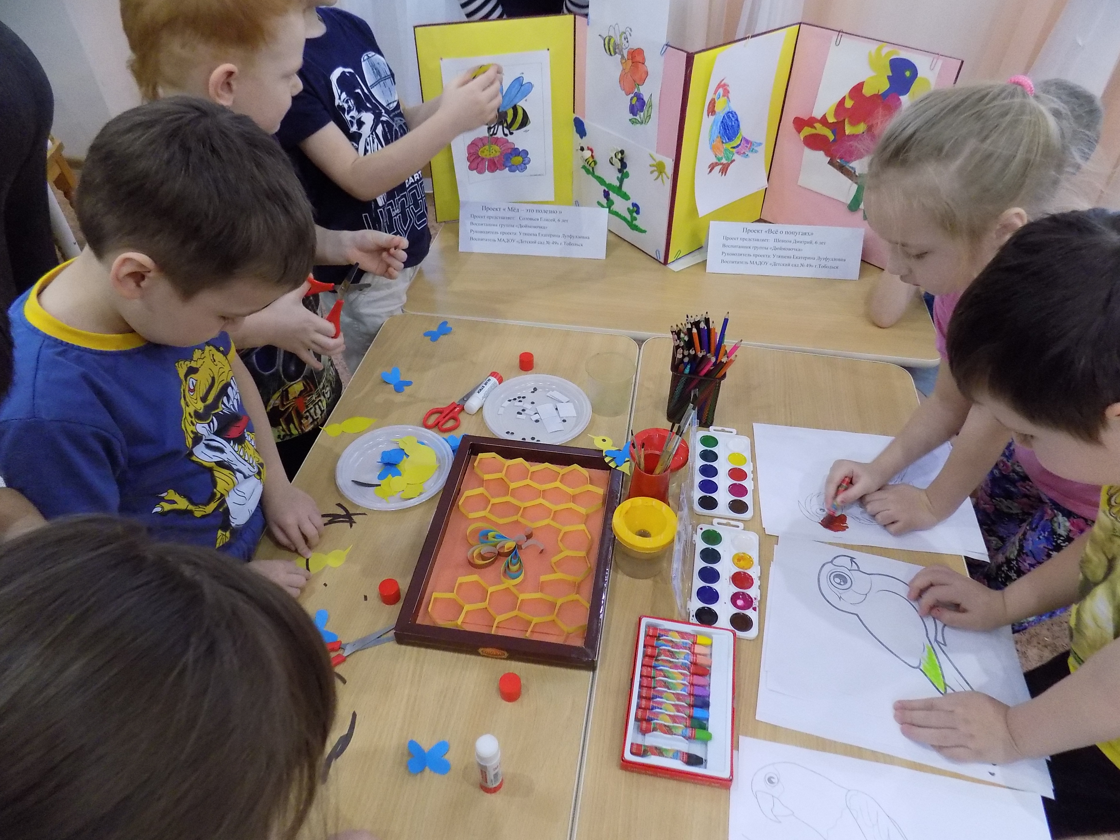 Все участники и гости стали непосредственными участниками: изобретали схемы, готовили чай, мастерили из конфетной обертки, конструировали из цветной бумаги попугаев, учились плести браслеты из резинок, лепили из соленого теста хлебо-булочные изделия и многое другое.