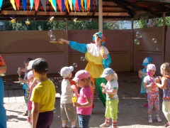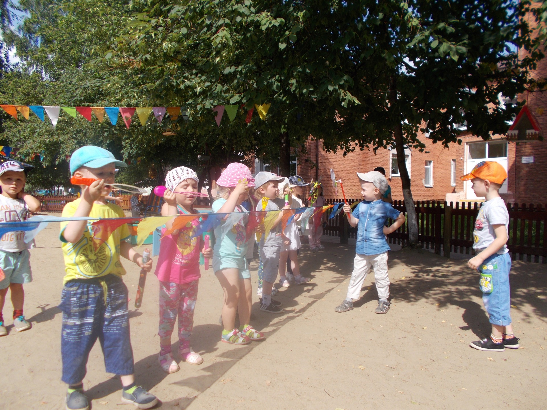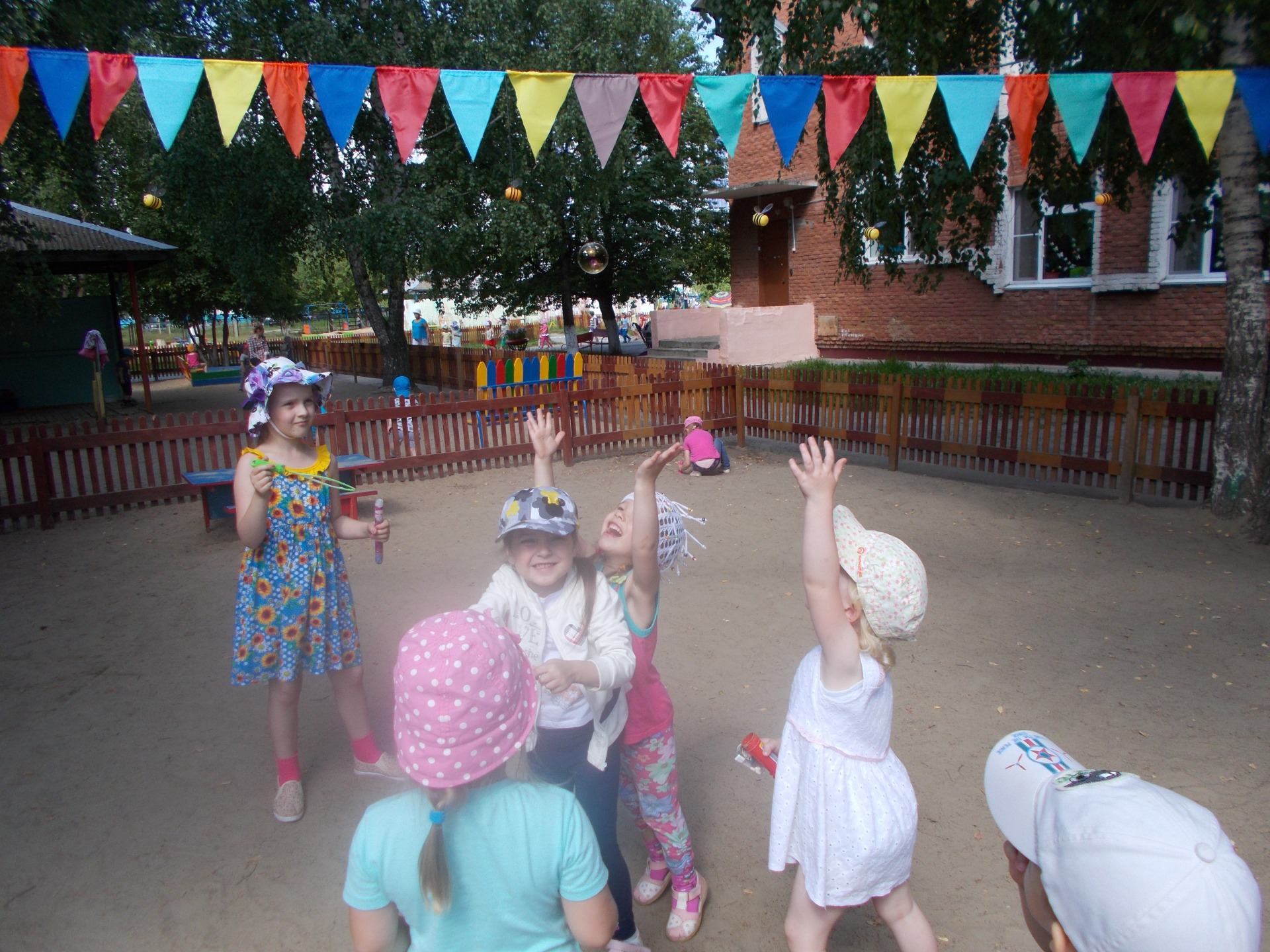 В средних группах «Пчелка» и «Незабудка» прошёл «Праздник мыльных пузырей». Главными персонажами были Карлсон и клоун Кнопа. Весёлые герои проводили опыты: «Свойство воды», «Тонет - не тонет», с удовольствием и задором играли в подвижные игры: «Солнышко и дождик», «Поймай мыльный пузырь», «Задуй мыльный пузырь за флажок».