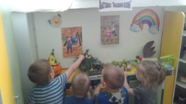 На первой младшей группе «Солнышко» была организованна выставка «Подарки осени» с помощью родителей и детей.