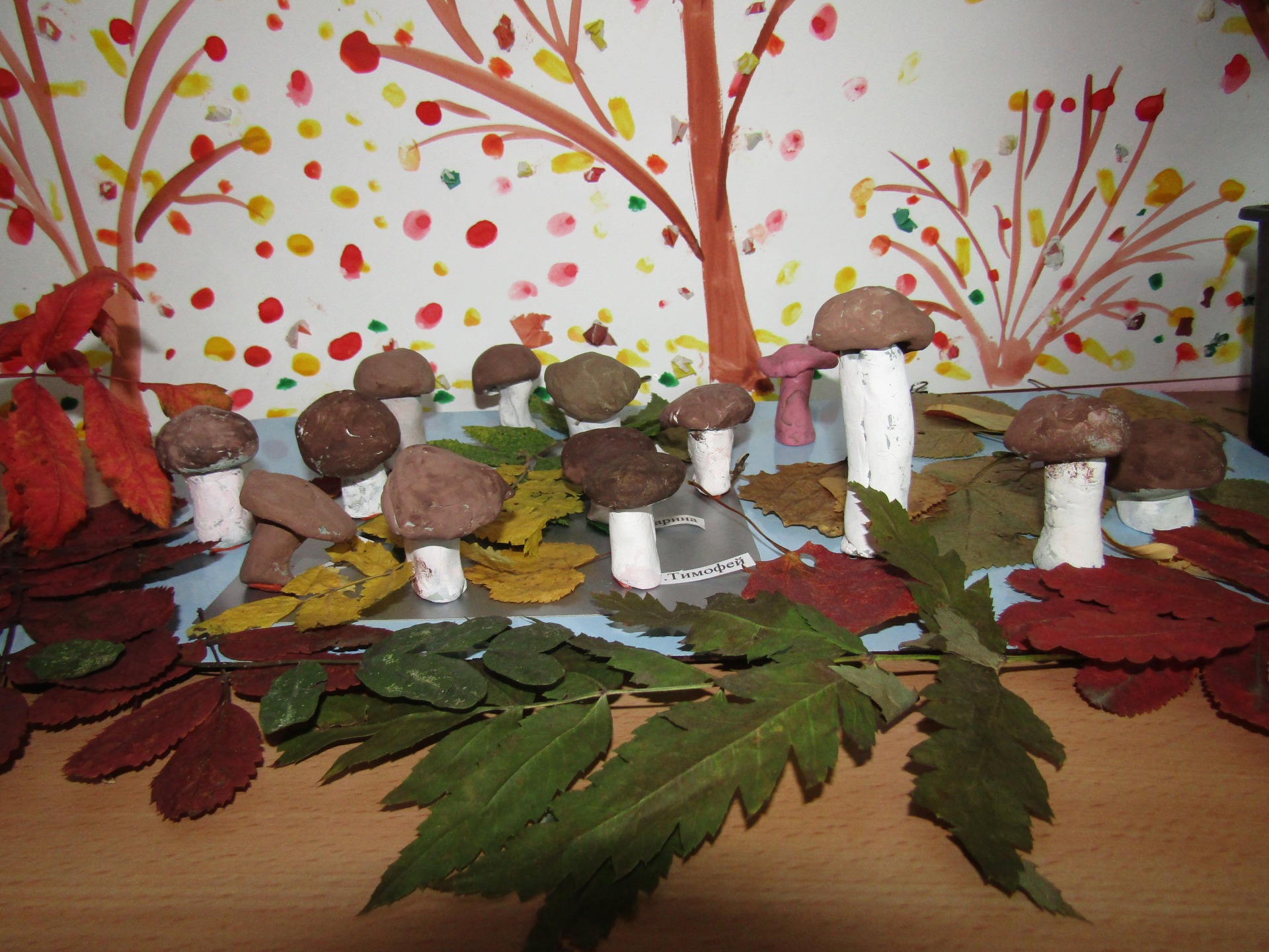 Кстати о грибах, здесь же расположилось и семейство белых грибов, а это уже наш, групповой, но первый опыт работы с глиной.