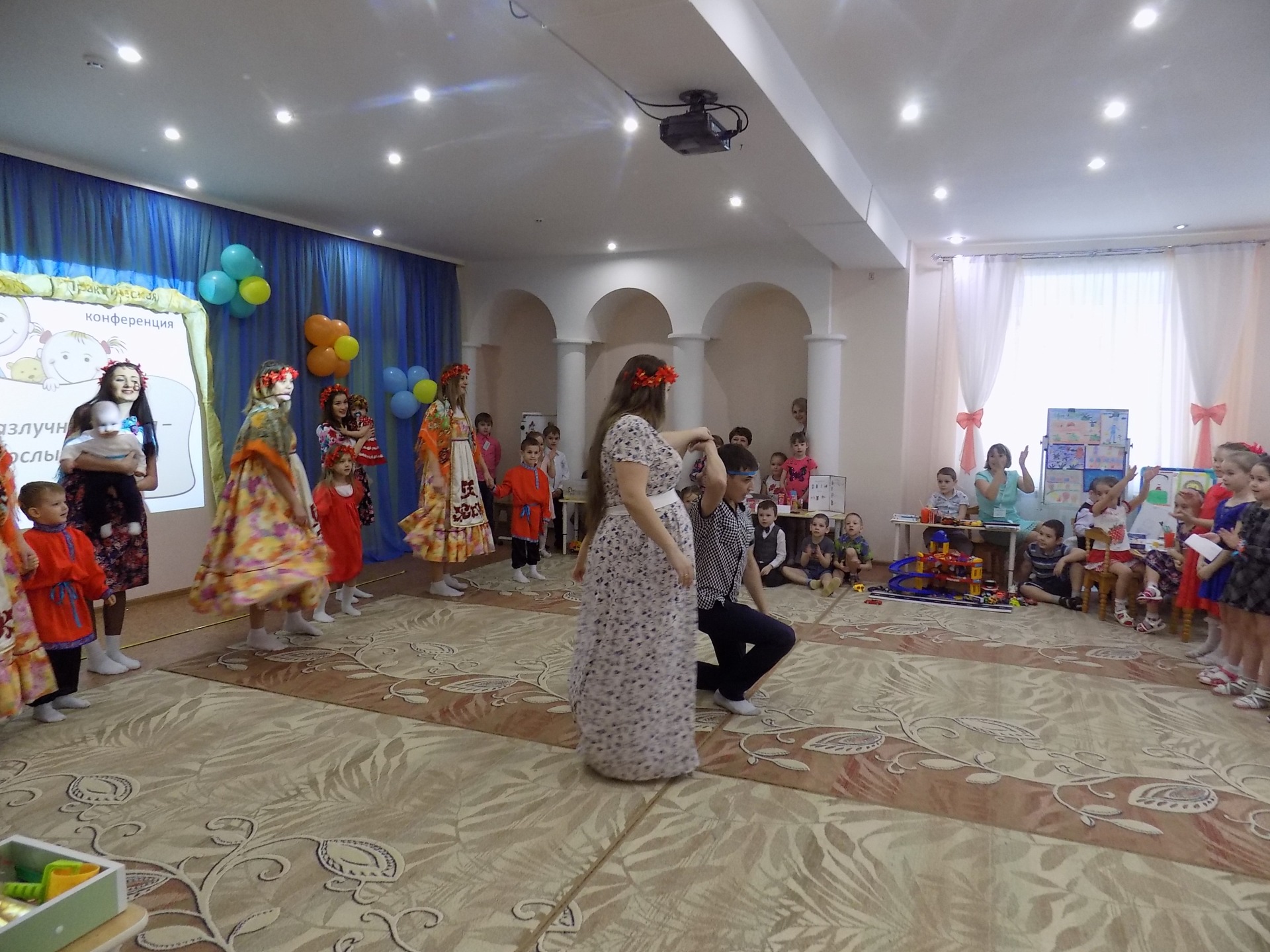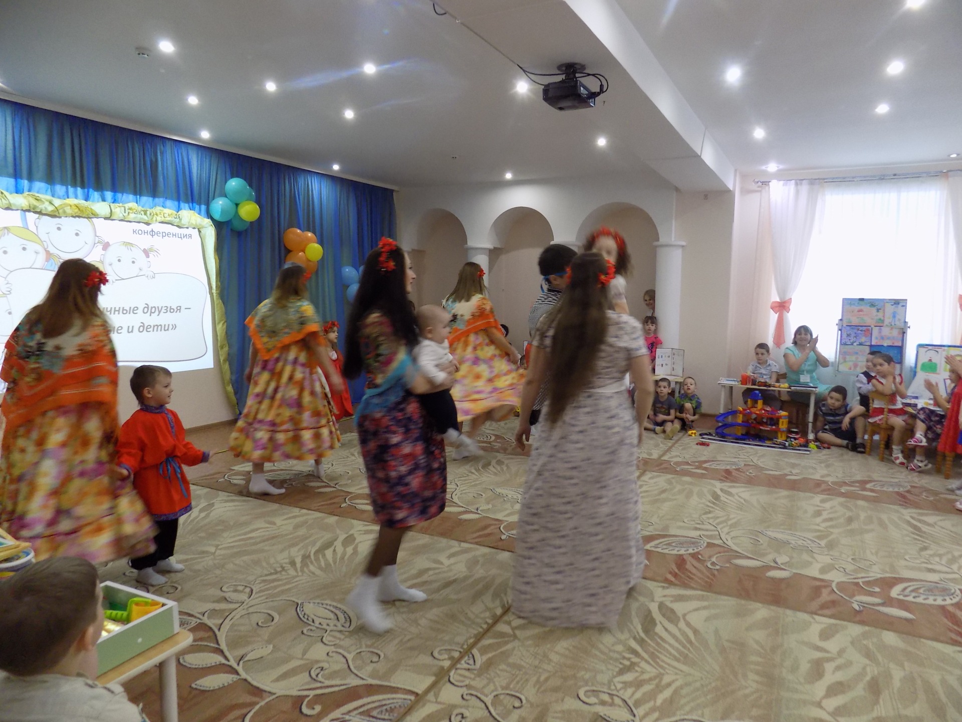 Неожиданностью в научной конференции «Неразлучные друзья-взрослые и дети» стал семейный танец «Тень на плетень», подготовленный старшей группой «Росинка». Танцоров, возраст которых был от трех месяцев до 6 лет, а также мам и пап, вызывали на «Бис!»