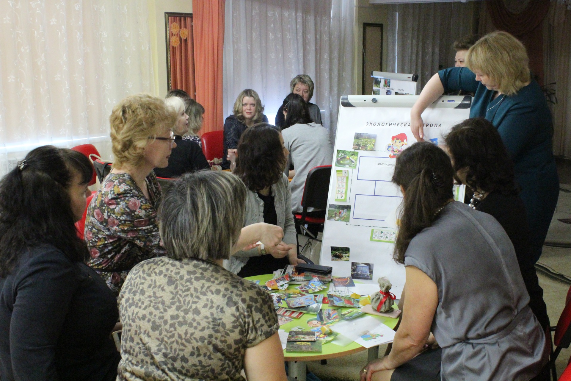 Директор детского сада Т.Н. Федосеева поделилась опытом по теме: «Формирование основ эколого-туристской деятельности в условиях детского сада». Участники встречи проследили работу дошкольного учреждения по данной проблеме от истоков до современных подходов с учетом требований ФГОСДО.