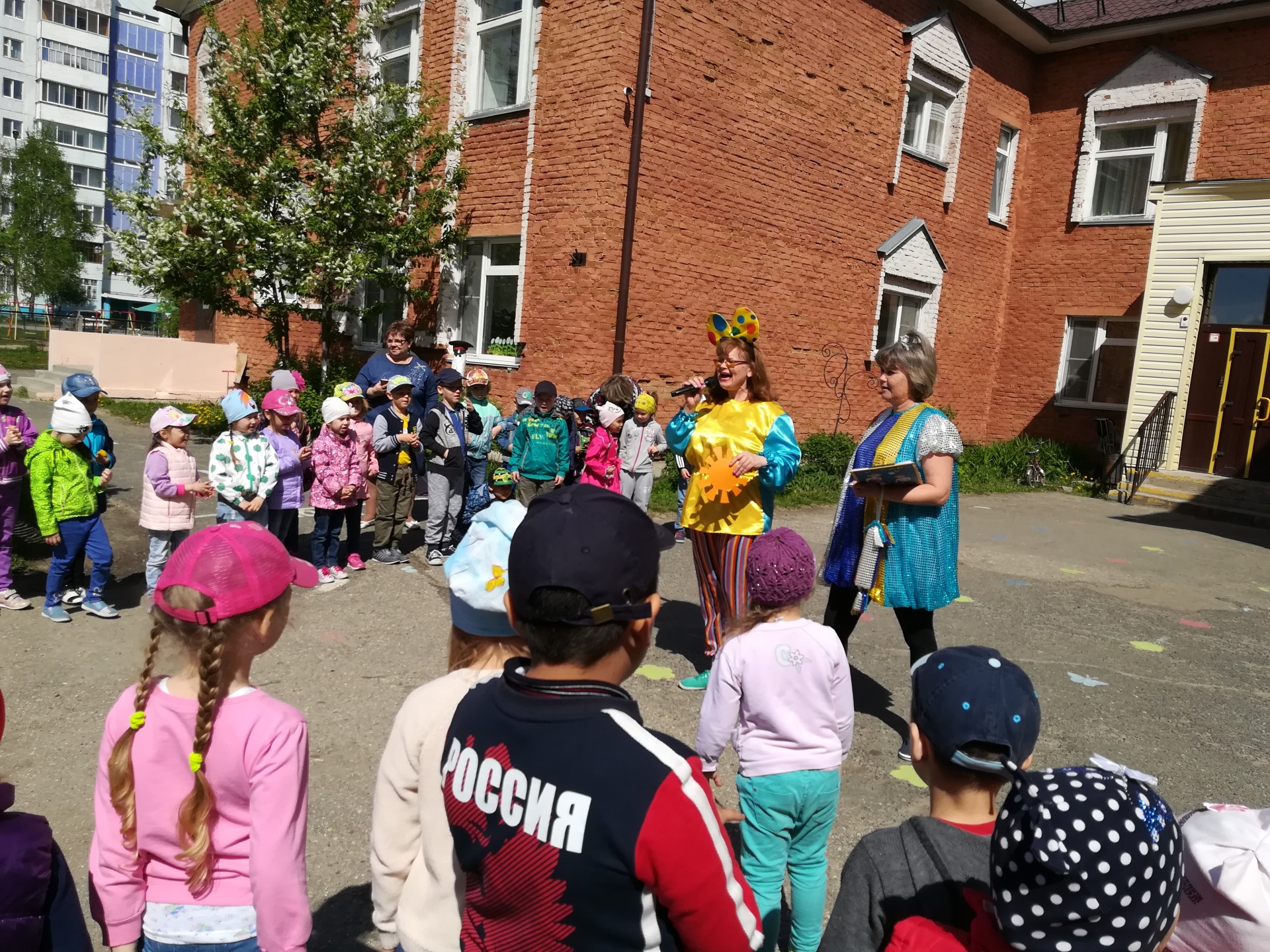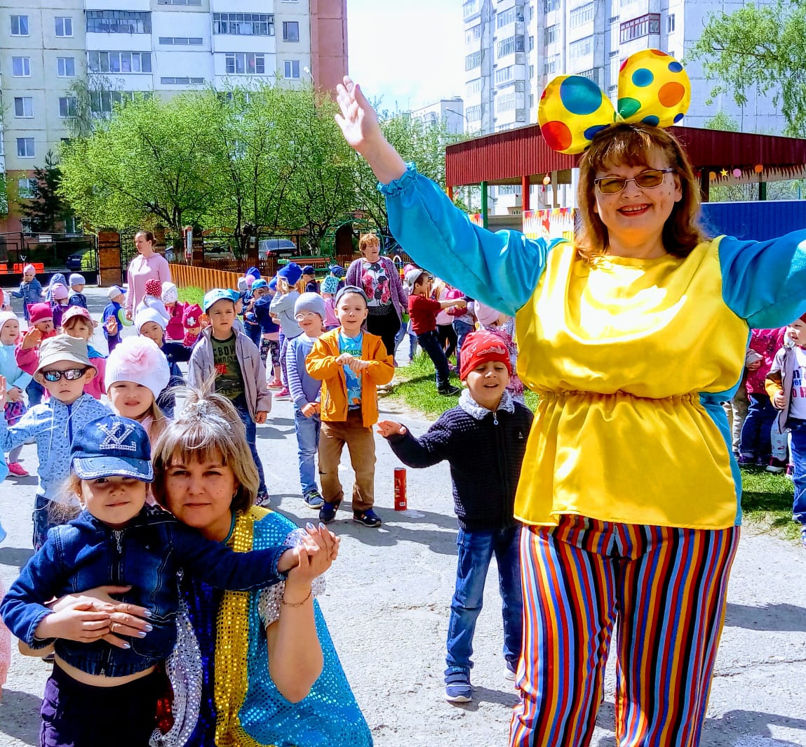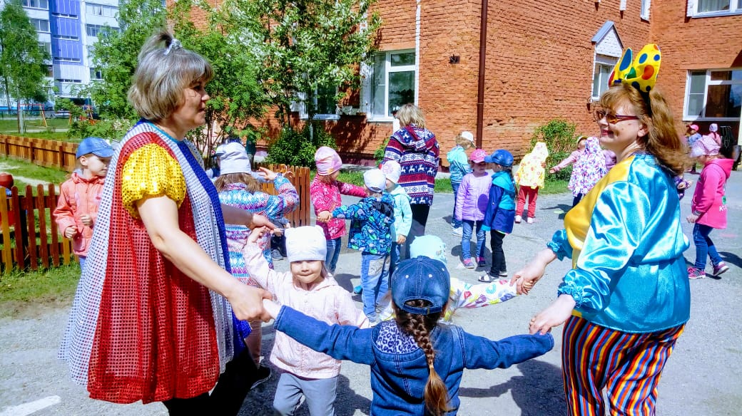 Завершился праздник музыкально-спортивным развлечением «Россия - родина моя!», который прошёл на площадке перед детским садом. В гости к детям пришли озорные клоуны Веснушка и Конфетка.