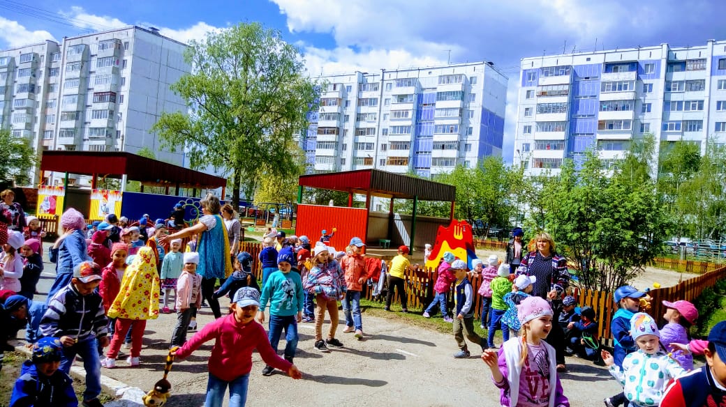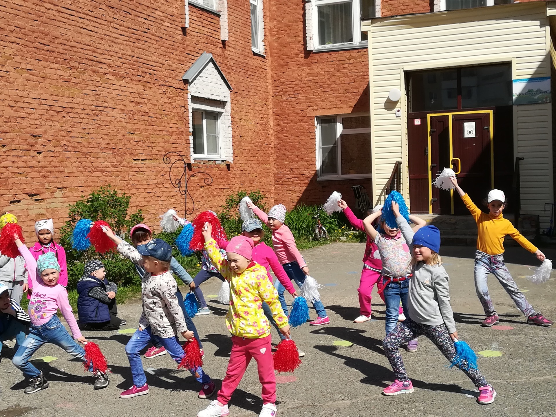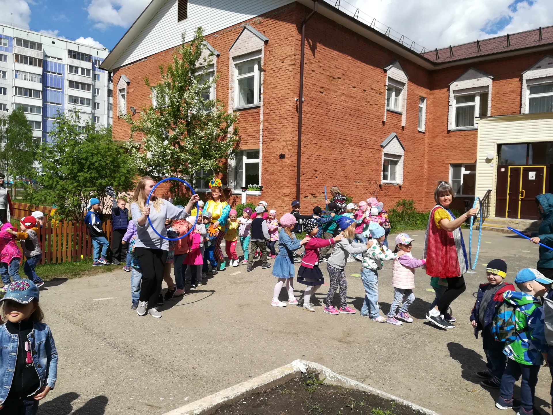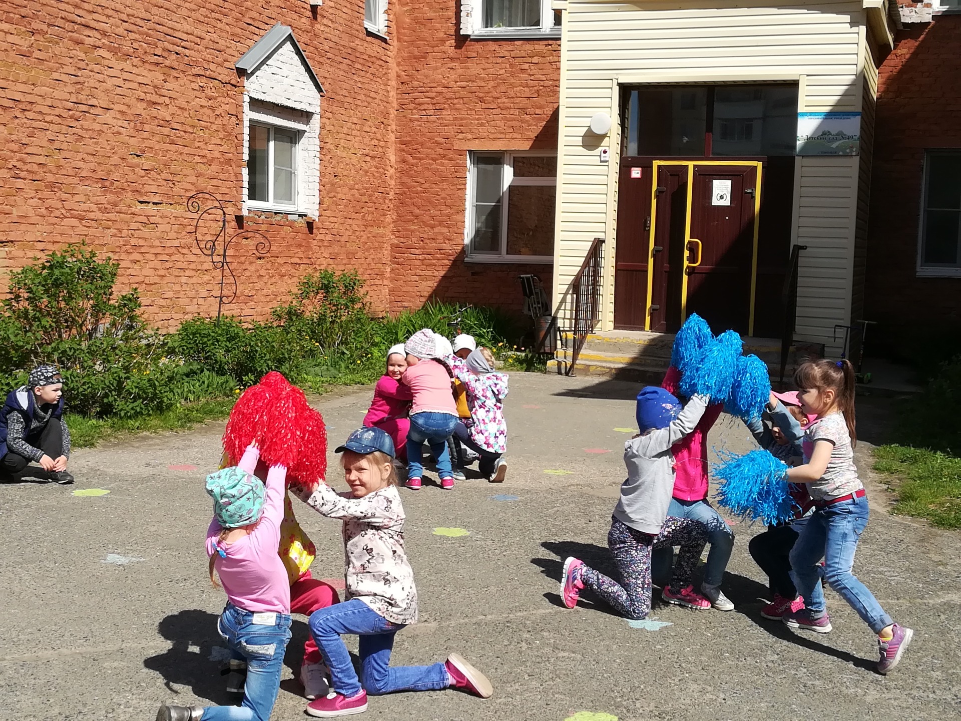 Завершился праздник музыкально-спортивным развлечением «Россия - родина моя!», который прошёл на площадке перед детским садом. В гости к детям пришли озорные клоуны Веснушка и Конфетка.