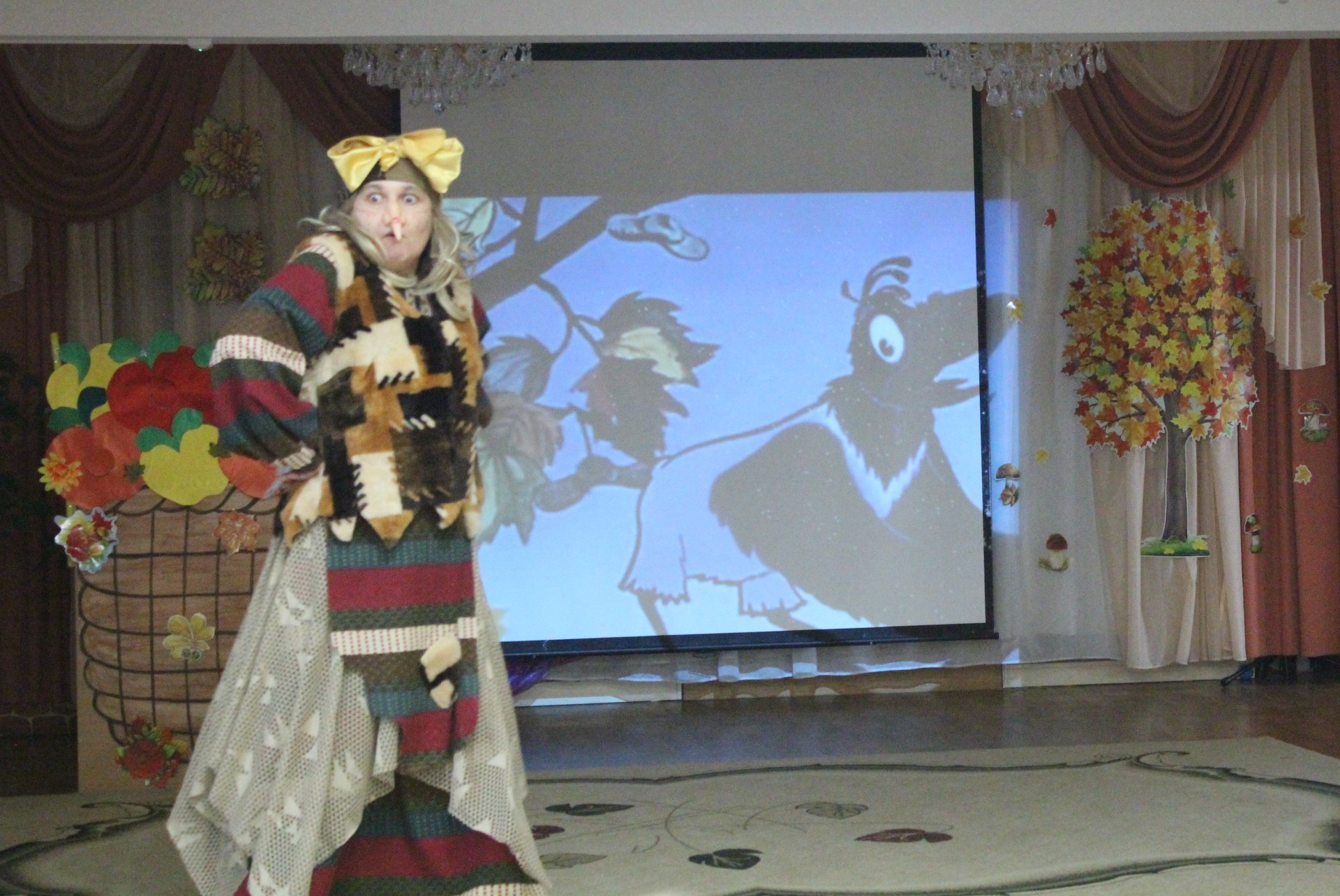 Ярко, задорно, динамично прошли утренники на старших и подготовительных группах. Коварный Ворон, заплутал Осень, что бы она, не попала в детский сад, но ребята прогнали Ворона и разоблачили Бабушку Ягу, которая переоделась в осень. Все вместе позвали Осень песенкой и игрой на музыкальных инструментах, поиграли с ней и получили в подарок от Осени ароматные яблочки