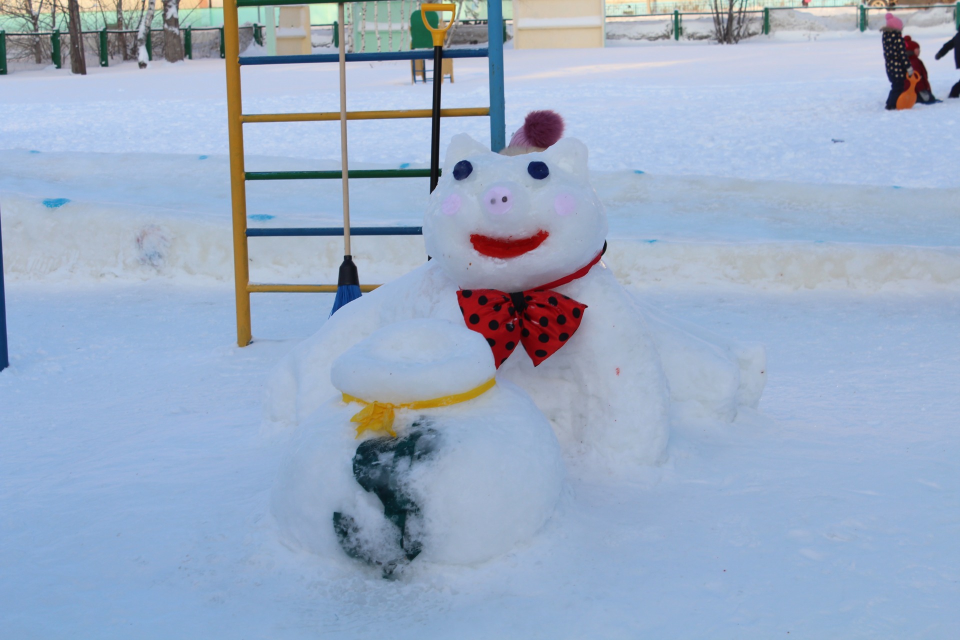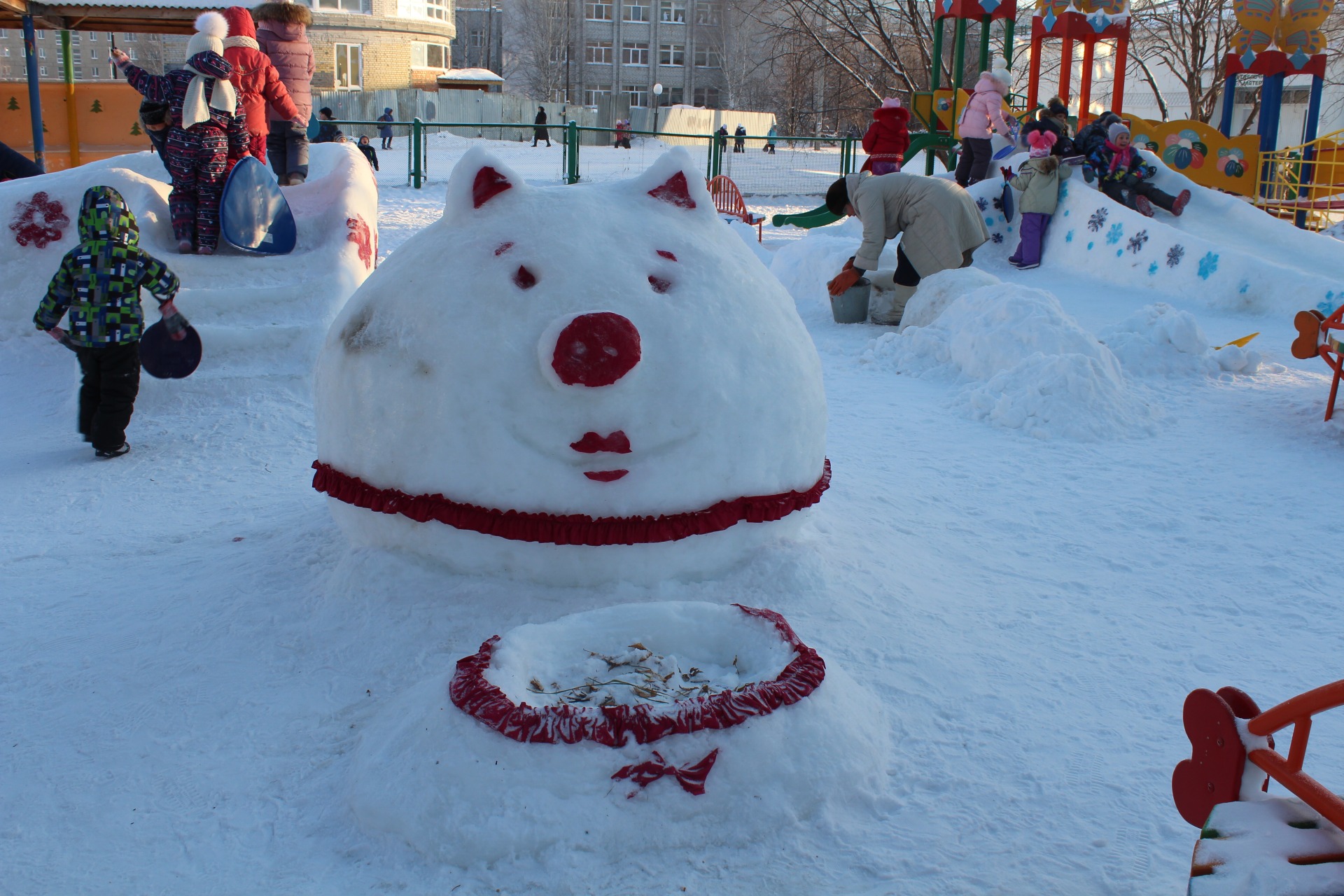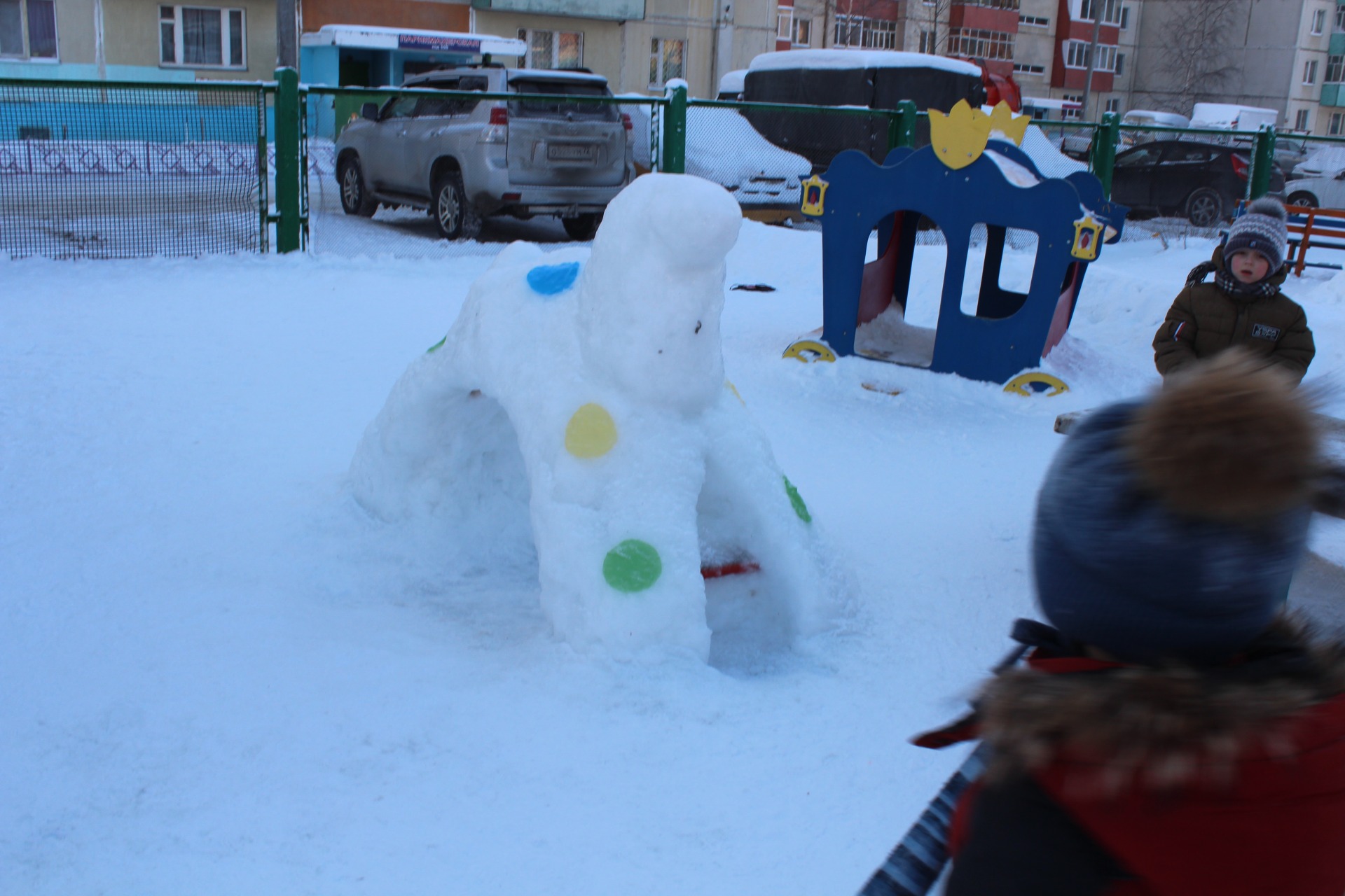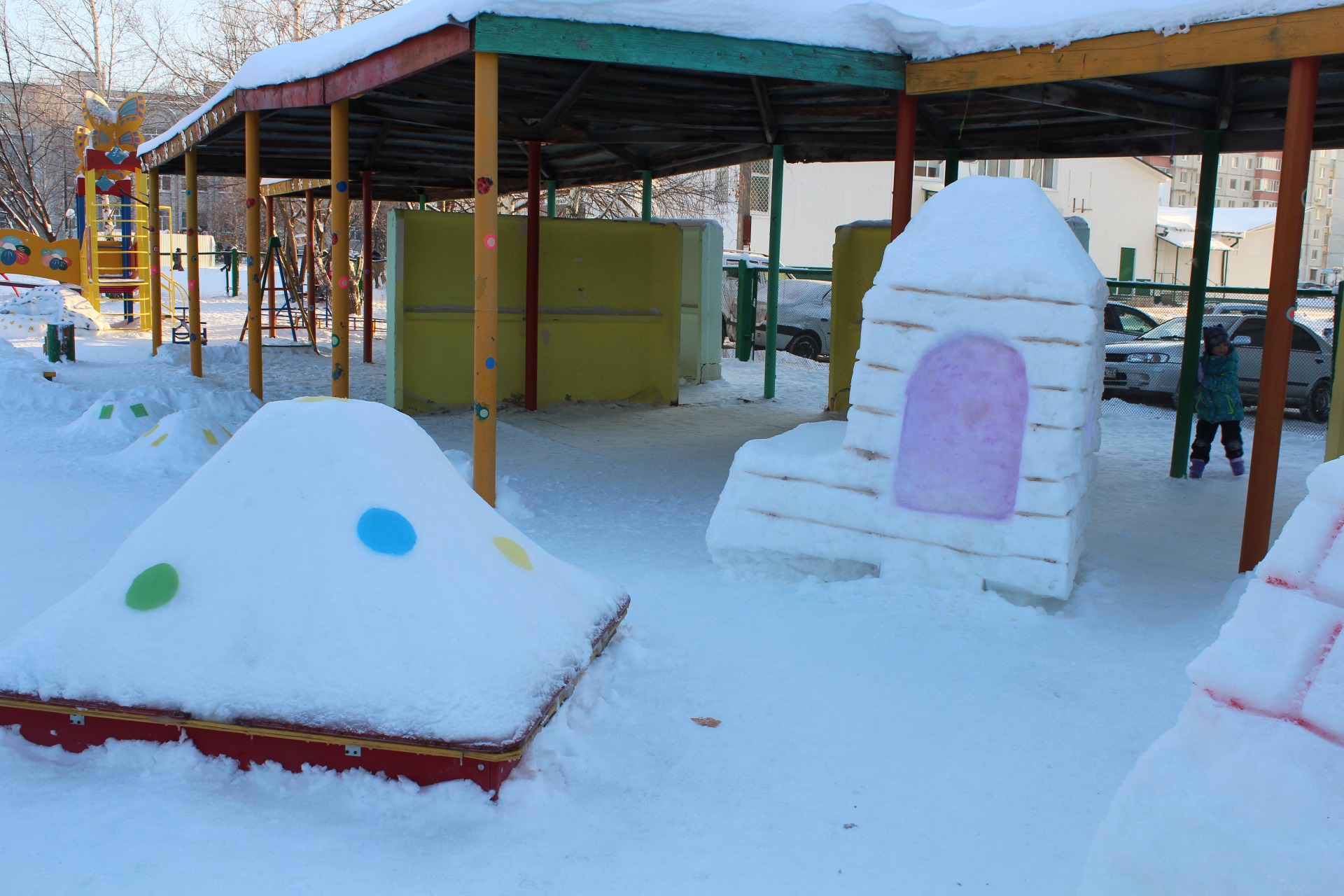 Большую помощь в оформлении участка снежными постройками оказали родители. Благодаря совместным усилиям педагогов, воспитанников и их родителей вот такие снежные постройки появились и на наших участках.