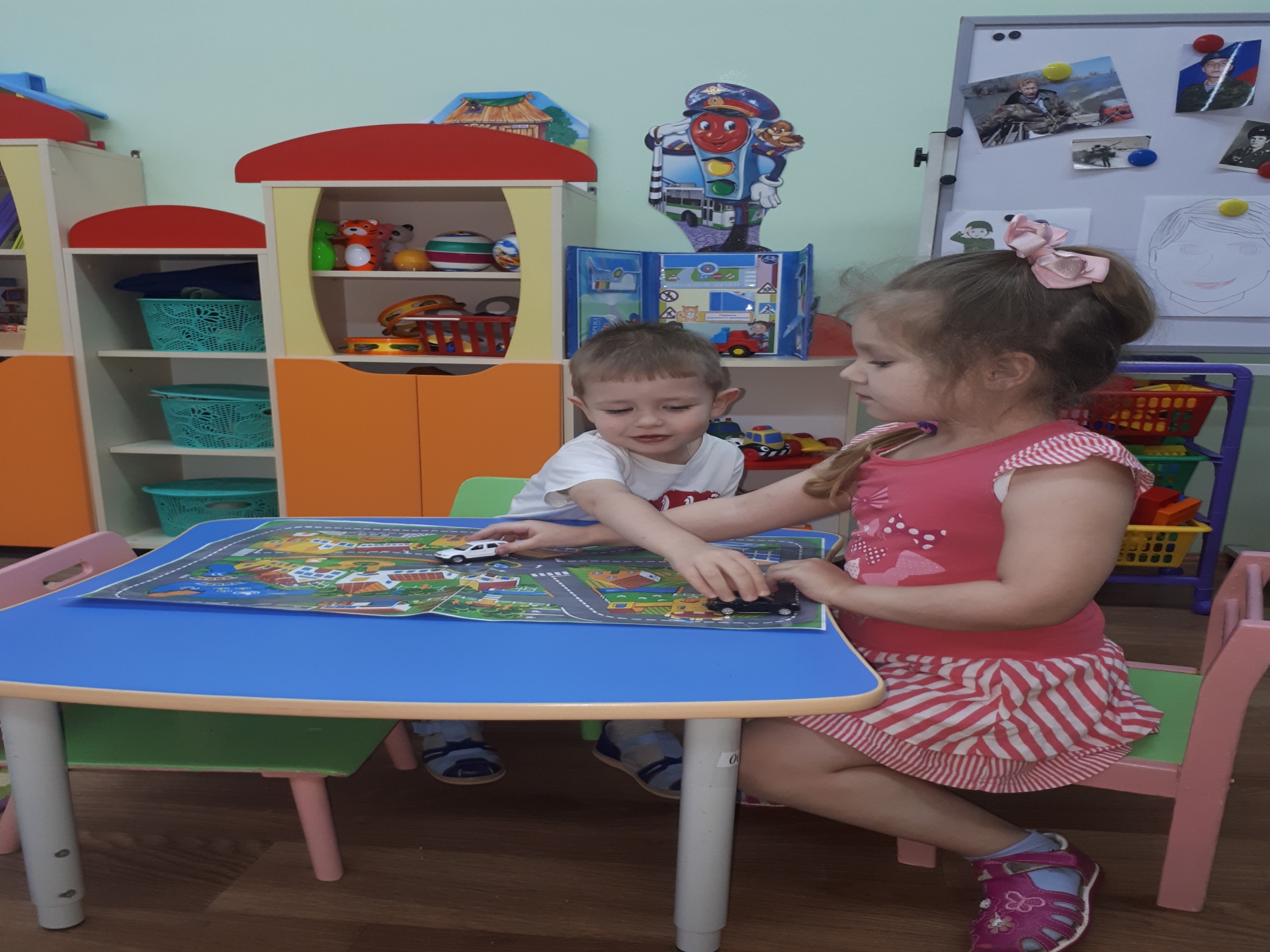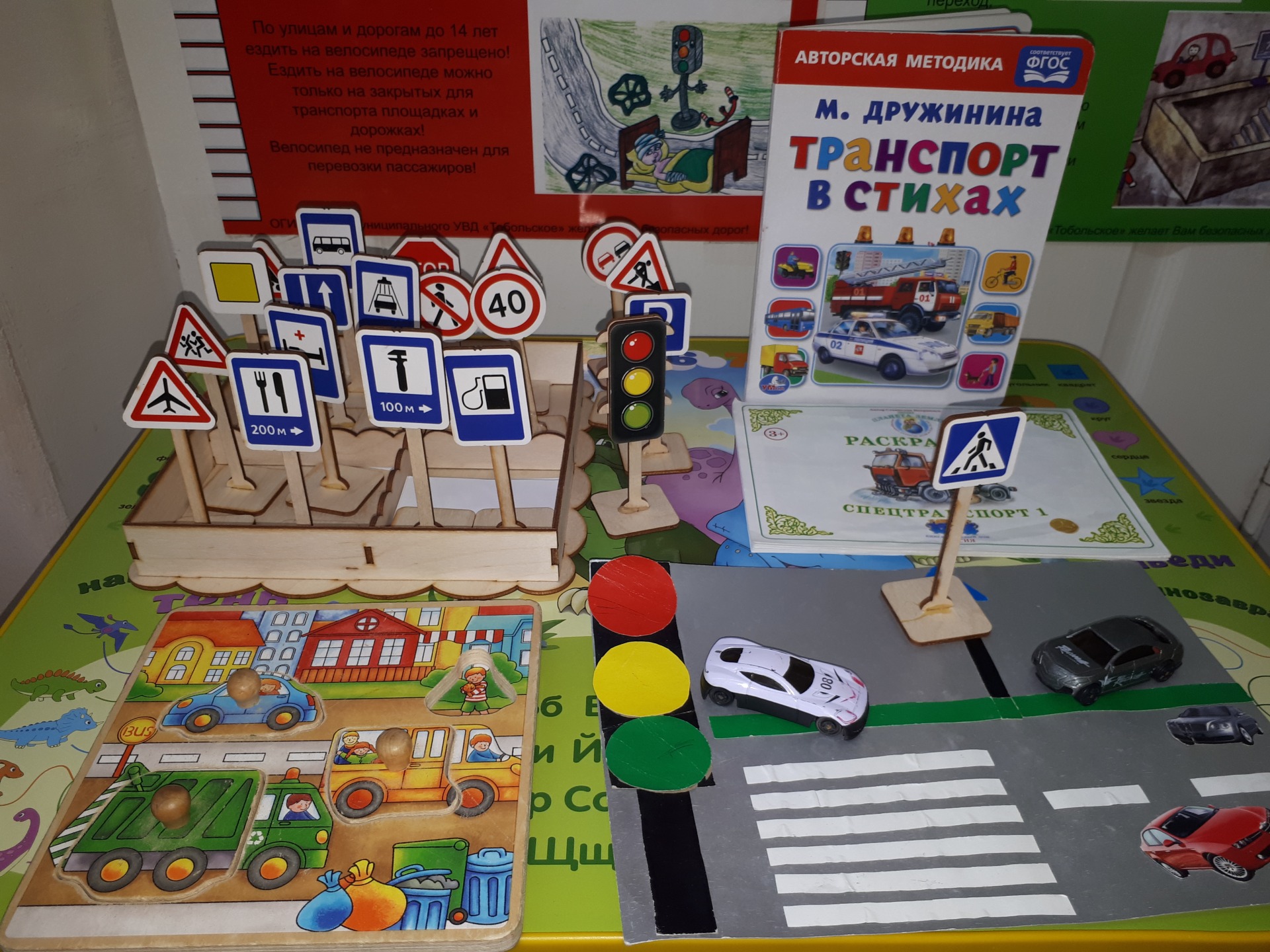 Закрепили и познакомились с дорожными знаками: автобусная остановка, больница, пешеходный переход, столовая, заправочная станция и другими. Дети раскрашивали светофор, разные виды транспорта – воздушный, наземный, водный.