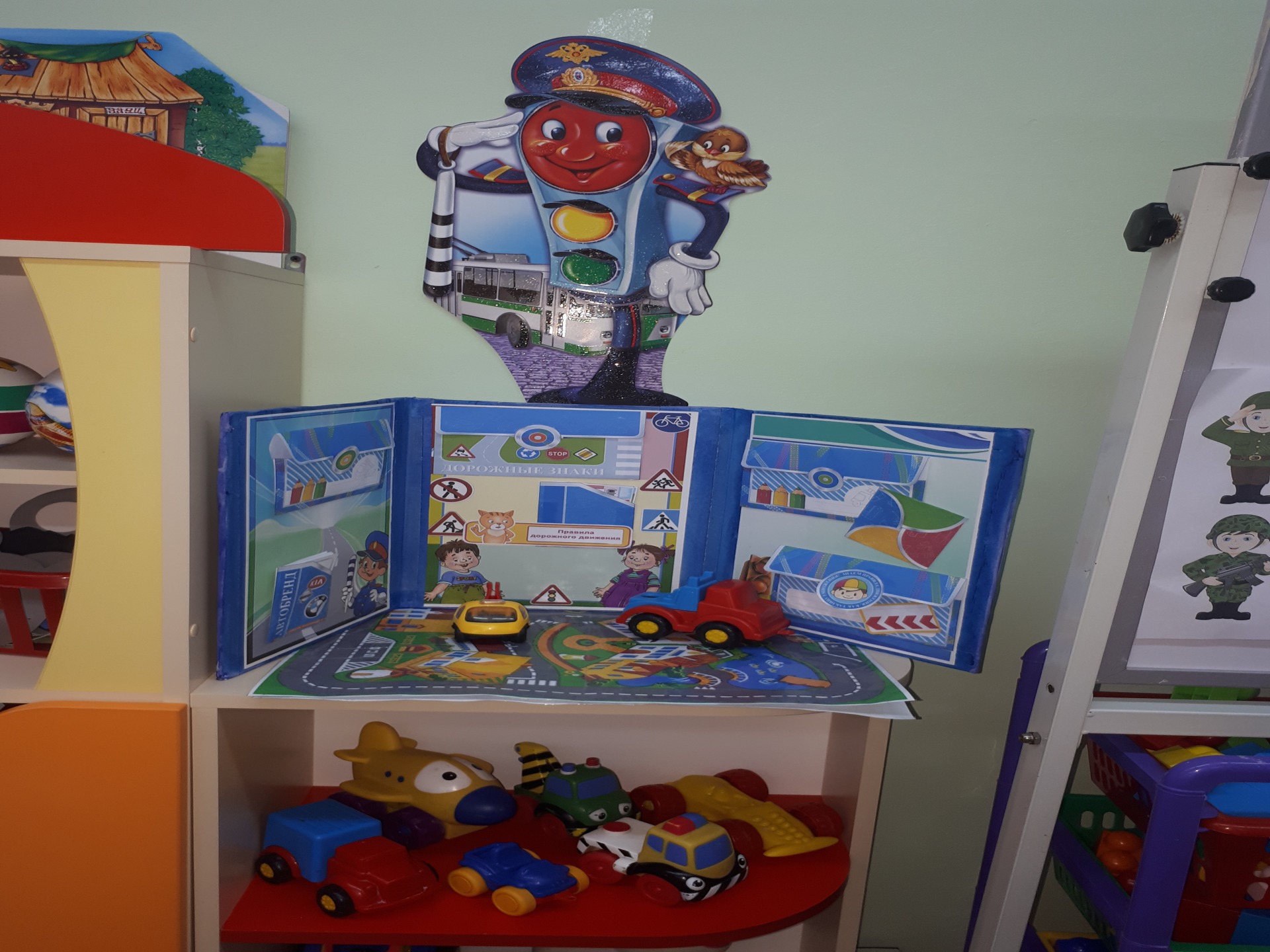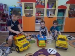 Интересно прошла сюжетно – ролевая игра «Шоферы», в ходе которой дети назвали основные детали автобуса: колеса, руль, окна, двери, салон, в салоне кондуктор продает билеты, автобус ведет шофер. Нами была открыта выставка «Транспорт». Мы оформили в группе лэпбук по правилам дорожного движения, макет дороги.