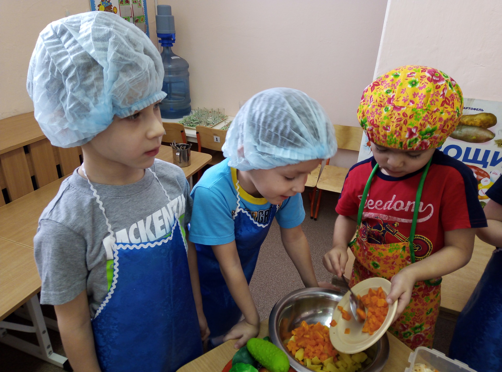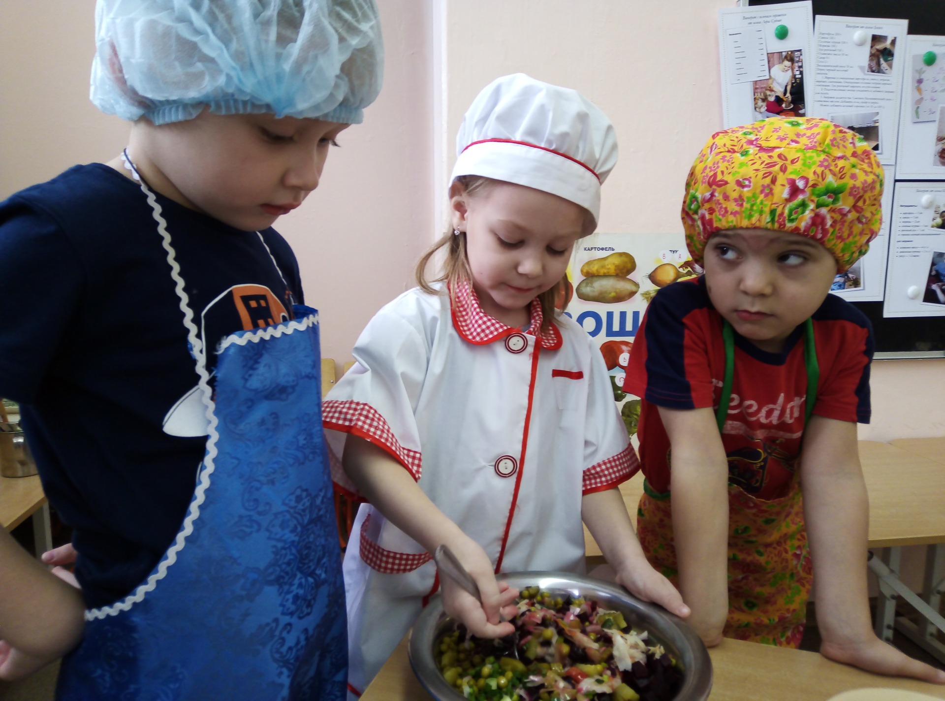 Так, что в пятницу, когда на кухне для них были сварены заветные овощи, юные поварята легко приготовили свой самый полезный зимний салат – ВИНЕГРЕТ!
