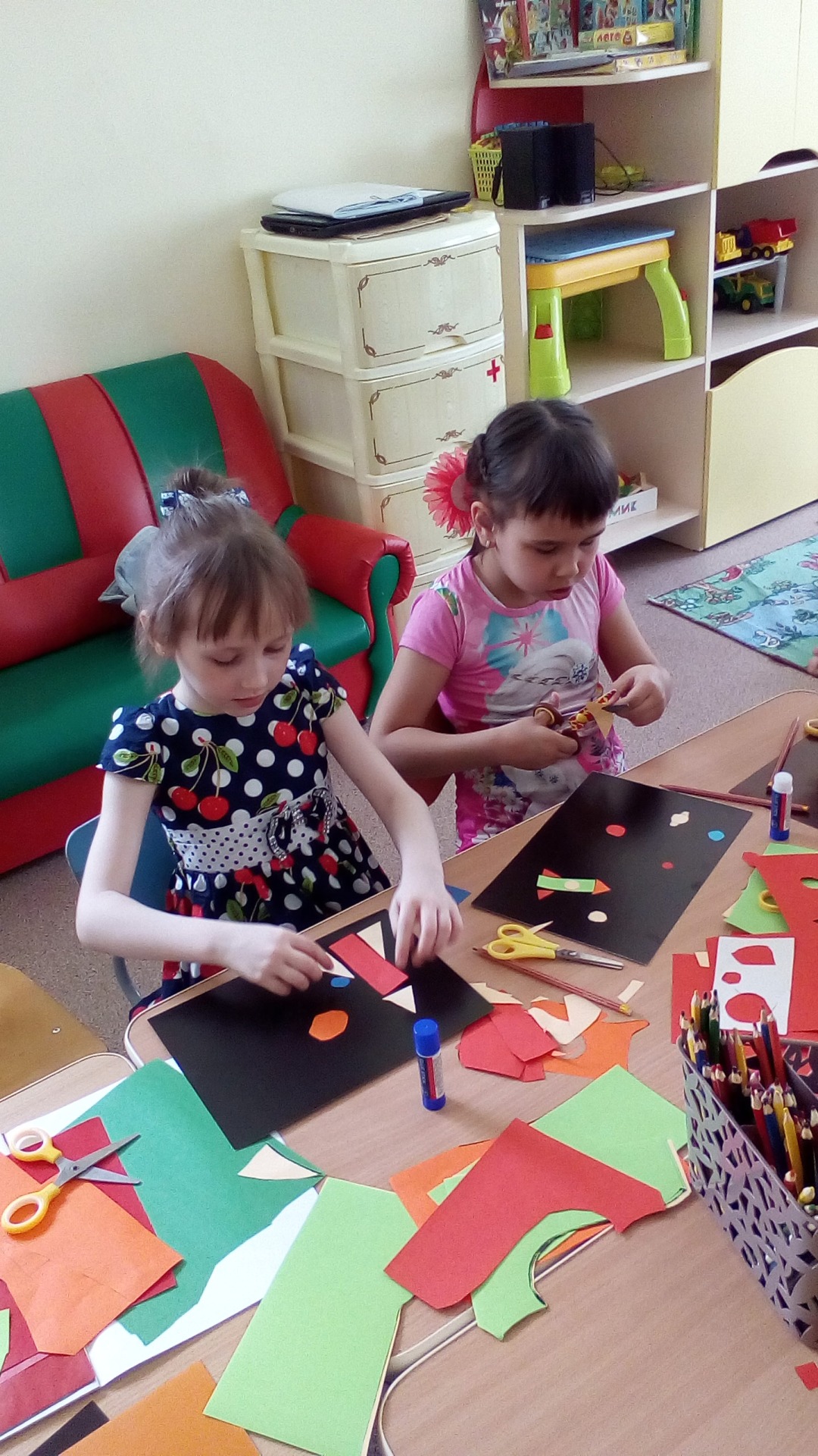 Конечно, всё, что узнали из фильма "Такой удивительный космос", из рассказа библиотекаря о первом космонавте Ю.А.Гагарине и других игр, захотелось воплотить в игре и строительстве разных космических объектов.