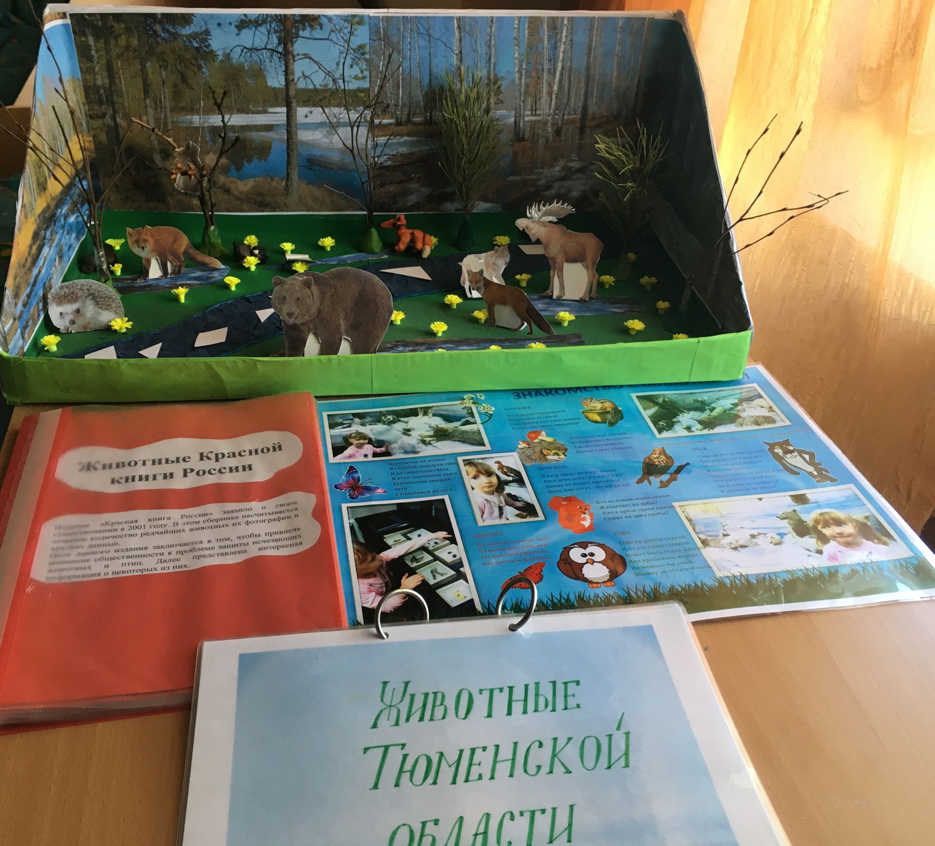 На протяжении месяца наши юные эколята вместе с «Умницей», «Тихоней» и «Ёлочкой» занимались аппликацией по теме, лепили, рисовали, читали энциклопедии, а итогом проделанной работы стал наш проект " Животные нашего края"