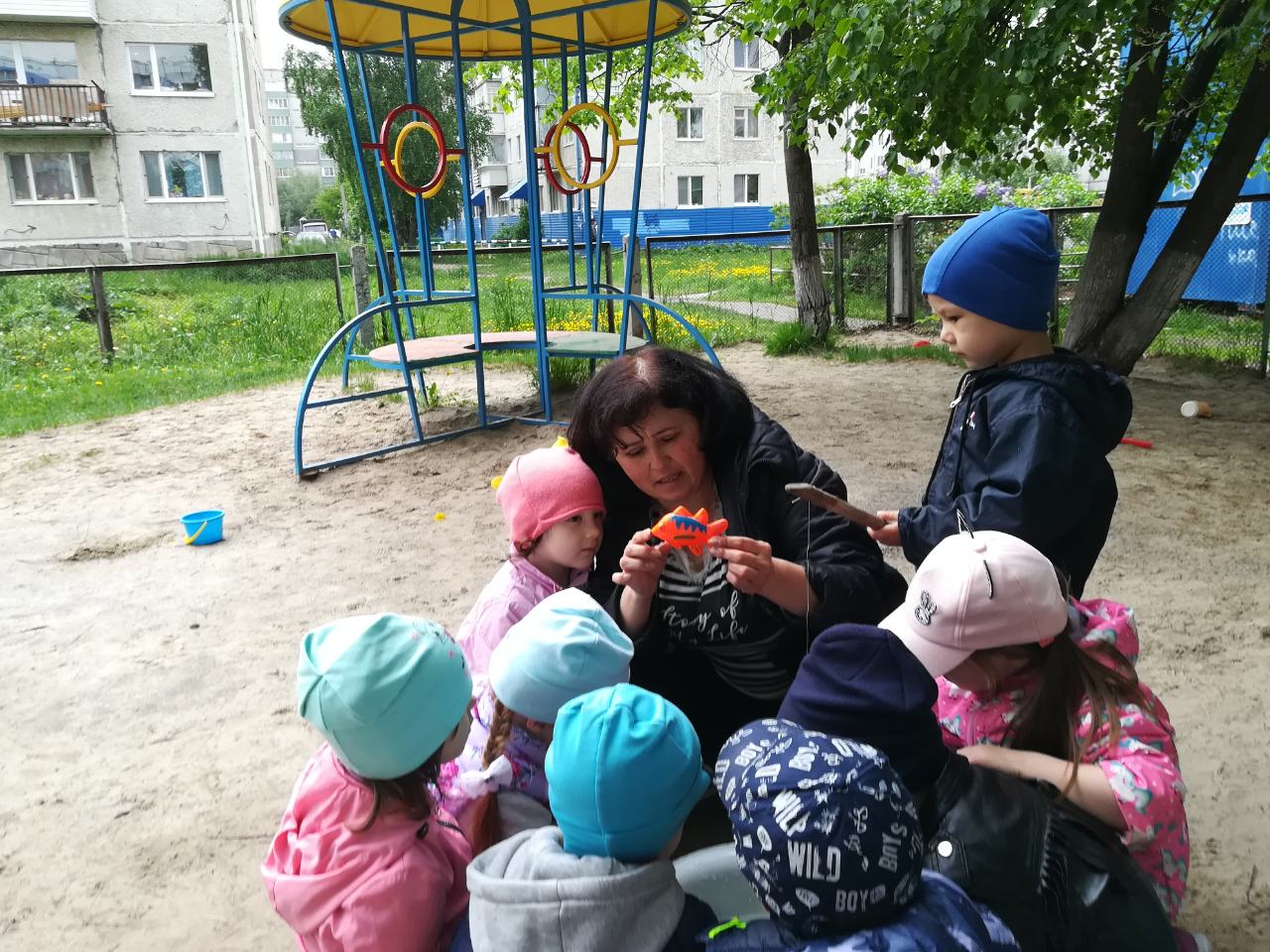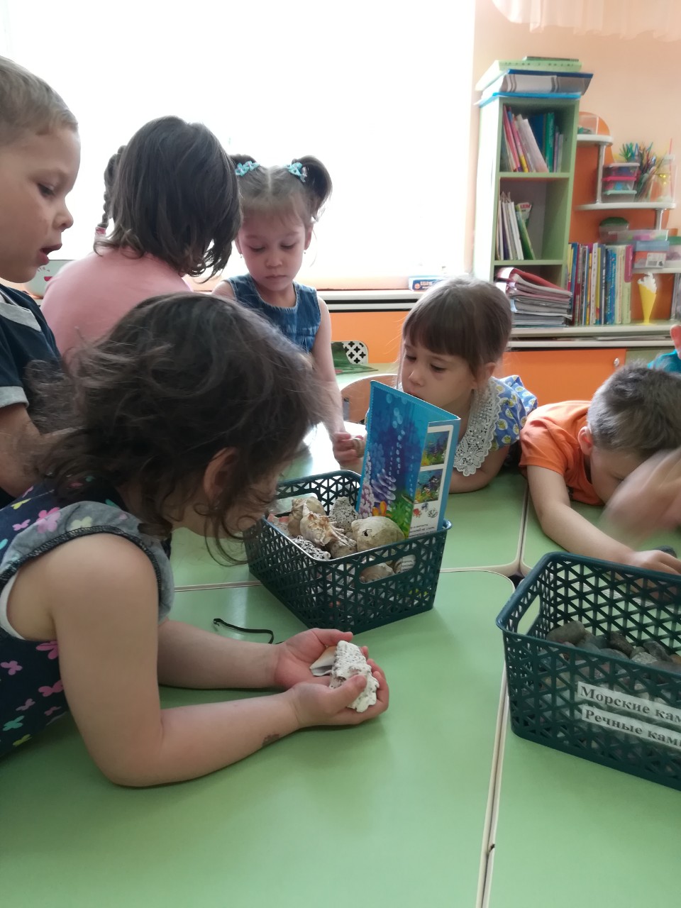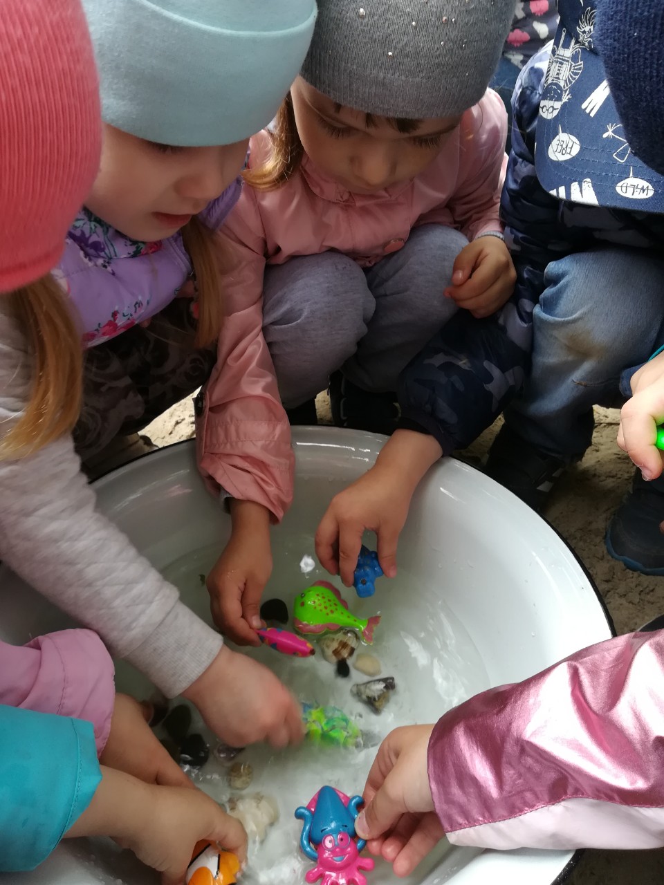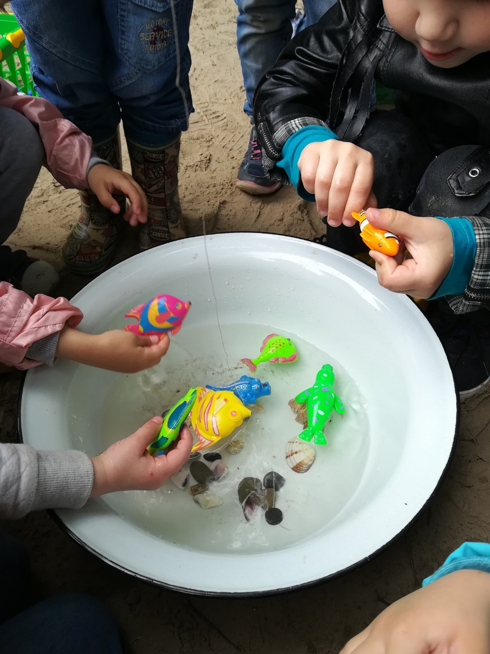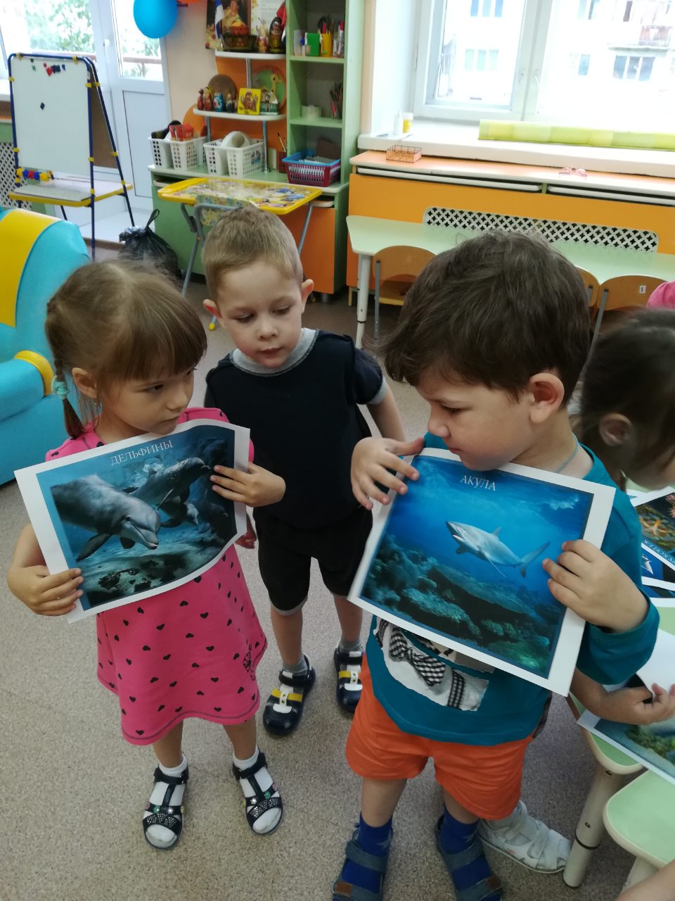 Под впечатлением этого мультфильма, мы продолжили играть в «море». Рассматривали мини – макет морского дна, в группе и на прогулке создали морское дно из камней и ракушек в емкости с водой. Дети с удовольствием приняли участие в игре, с интересом рассматривали предложенные мною фотографии обитателей моря, с какими – то они уже были знакомы, а каких – то видели впервые. Познакомились с разнообразными обитателями морей и с тем, какое значение море имеет в жизни человека.