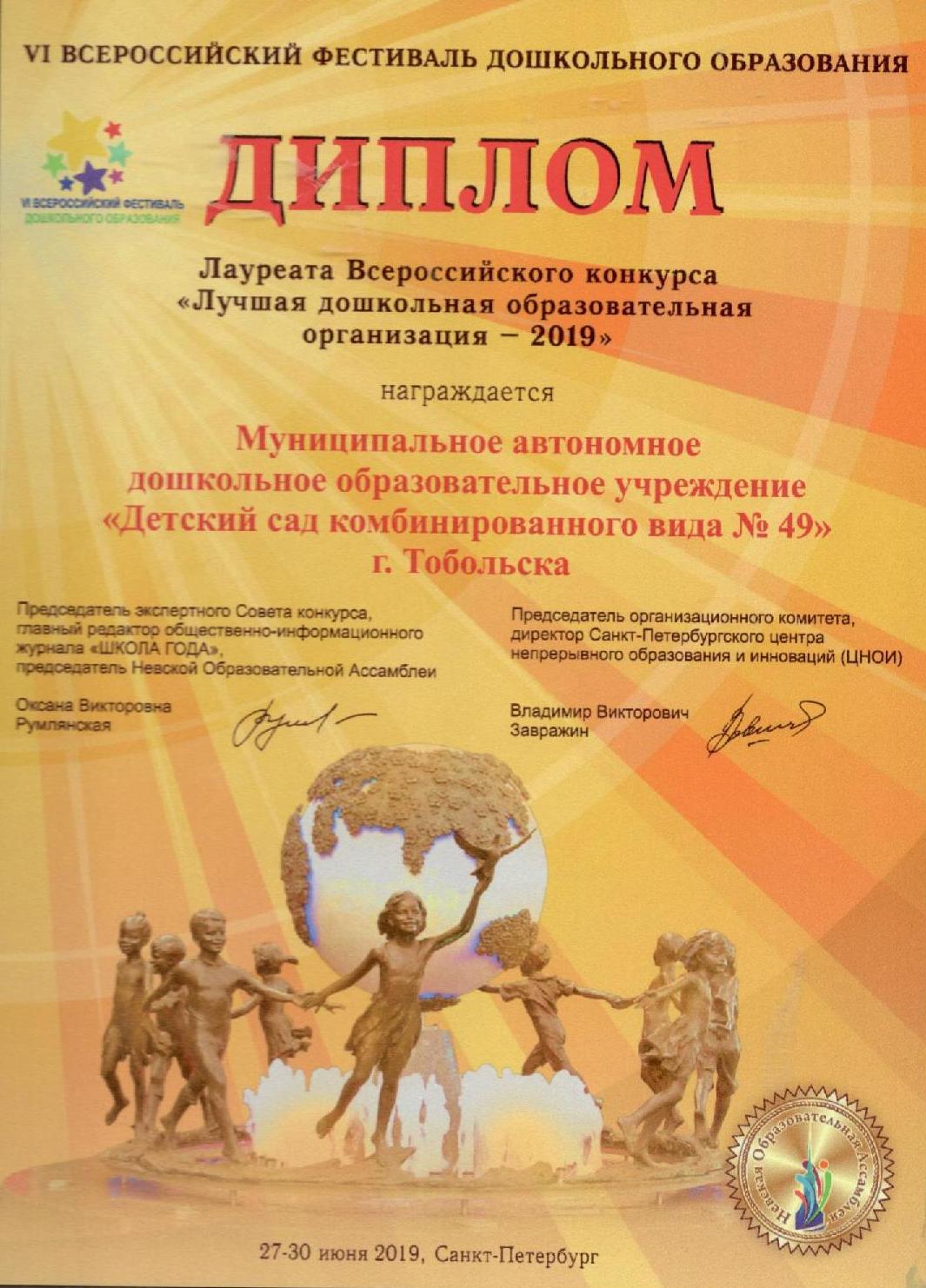 Участники Всероссийского конкурса "Лучшая дошкольная образовательная организация 2019"
