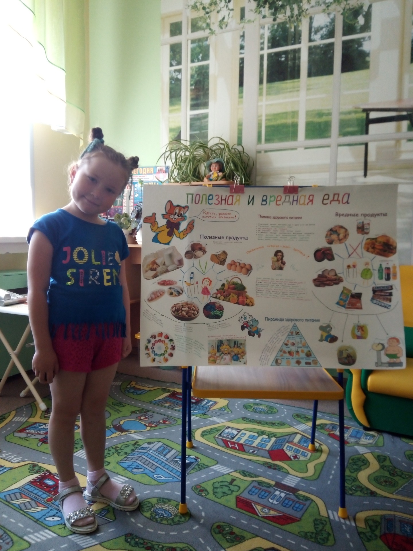 Всю неделю дети, вместе с родителями, готовили сообщения и презентации, рисовали газеты, рассказывали о полезных и вредных продуктах, о витаминах. Так же вспомнили о составляющих здорового образа жизни.