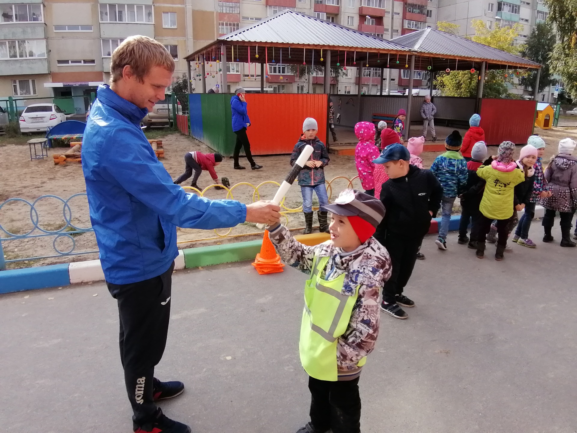 В рамках "Месячника безопасности" воспитанники подготовительных групп участвовали в квест-игре. Соревновались команды "Зебра" и "ЮНГИ" (юные государственные инспекторы). За правильность ответов команды получали жетон на каждой станции, в конце игры подводились результаты по количеству жетонов. Встречу команд организовали тренеры по футболу Дмитрий Бобров и Ильфат Баязитов.