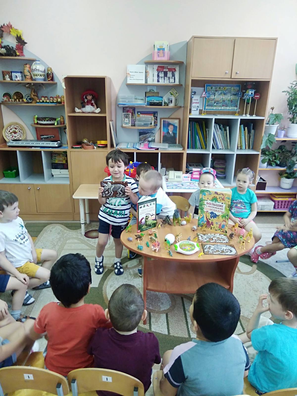 В рамках клуба проводятся «Встречи с интересными людьми», создаются групповые и индивидуальные проекты, где дети рассказывают о своих увлечениях и увлечениях своих родных. В этот раз своими знаниями поделился Дониловский Кирилл. Он показал ребятам свою большую коллекцию динозавров, рассказал о разных видах динозавров, как они появлялись на свет, где обитали, чем питались, о их строении, почему исчезли и т.д.