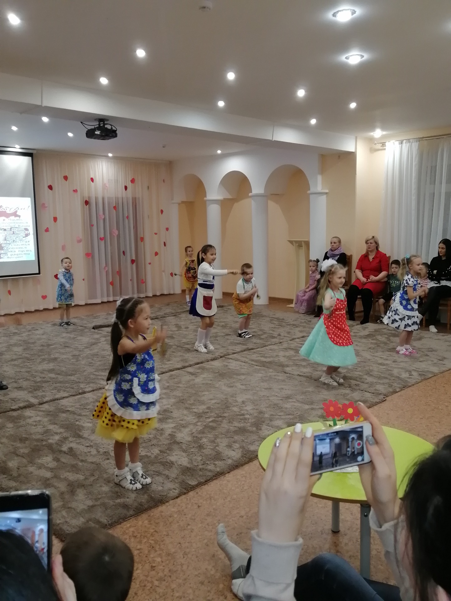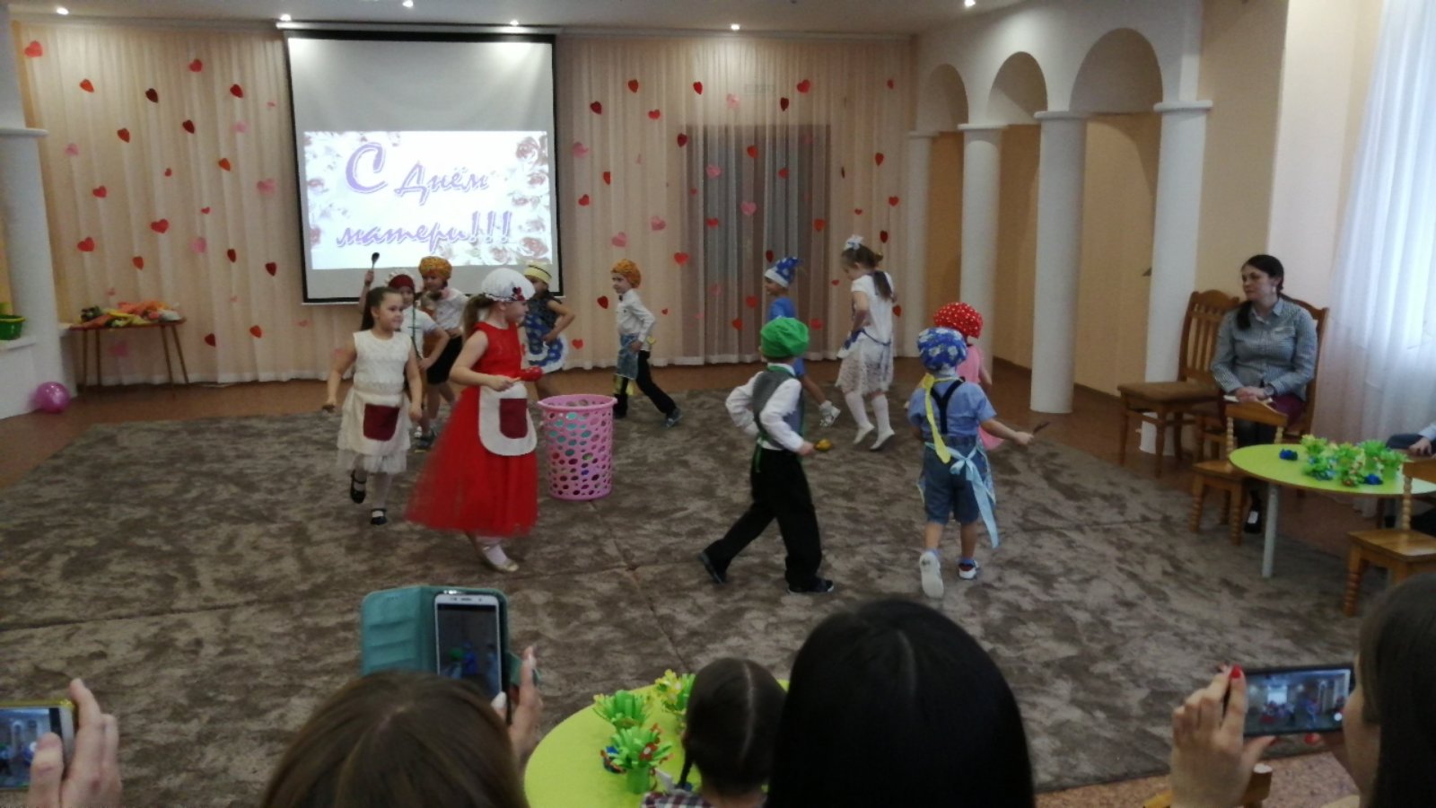 Дети средней группы приготовили стихотворения в честь праздника. Провели конкурсы для мам «пословиц и поговорок», «Наряди маму» и «Собери бусы для мамочки». Дети отгадывали загадки о своих мамах, пели песенки и танцевали.