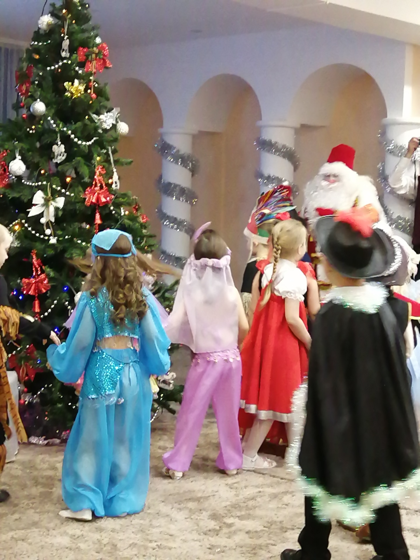 Дети смогли окунуться в праздничную атмосферу приключений, поучаствовать в интересных конкурсах. С появлением Деда Мороза начался настоящий праздник с песнями и танцами вокруг елки.