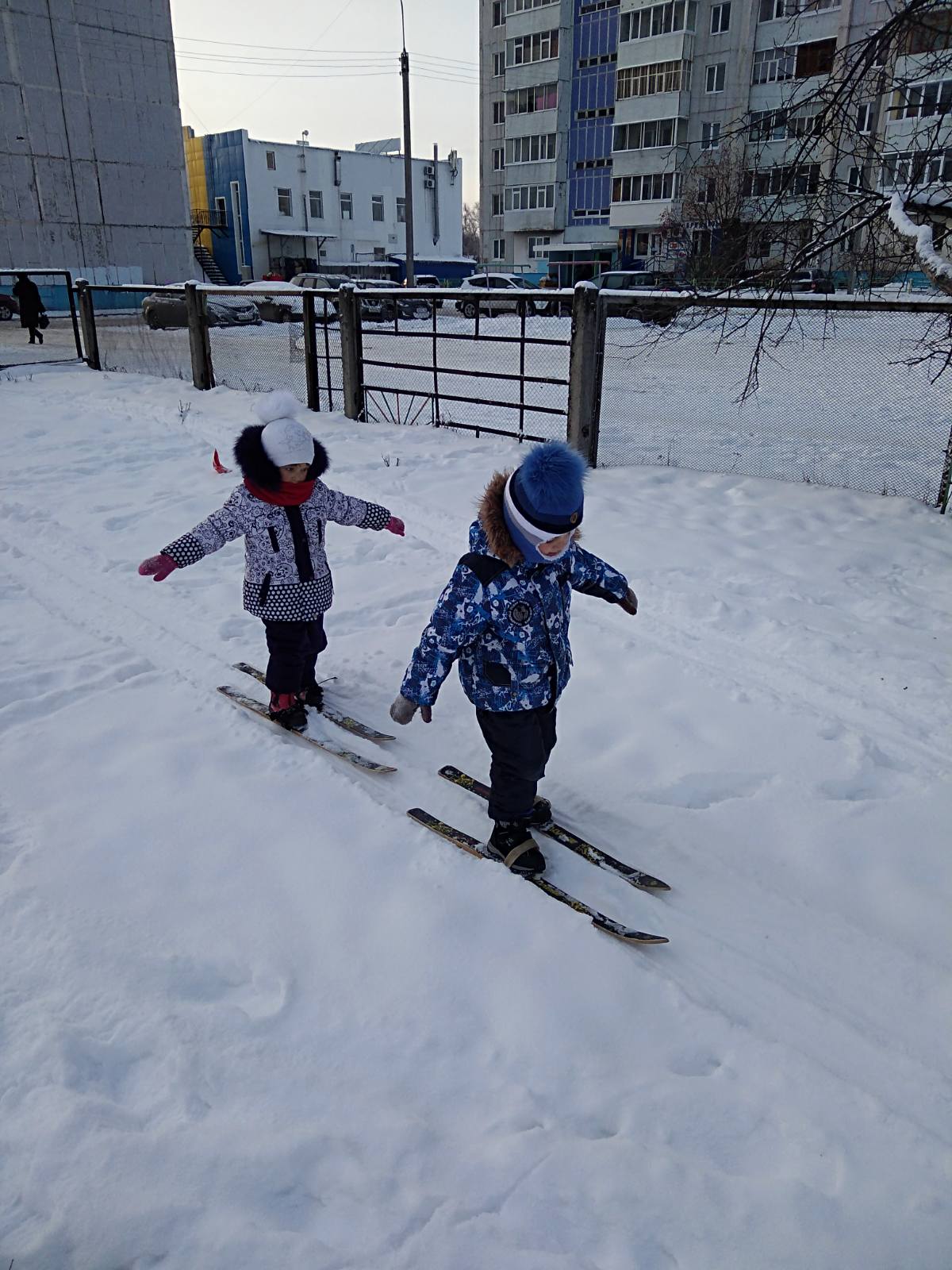 А потом на лыжи встали, по лыжне мы побежали