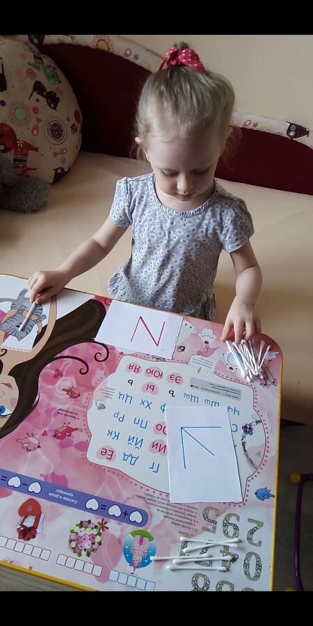 Правила игры: Выкладывать фигуры из ватных палочек точно по схеме.