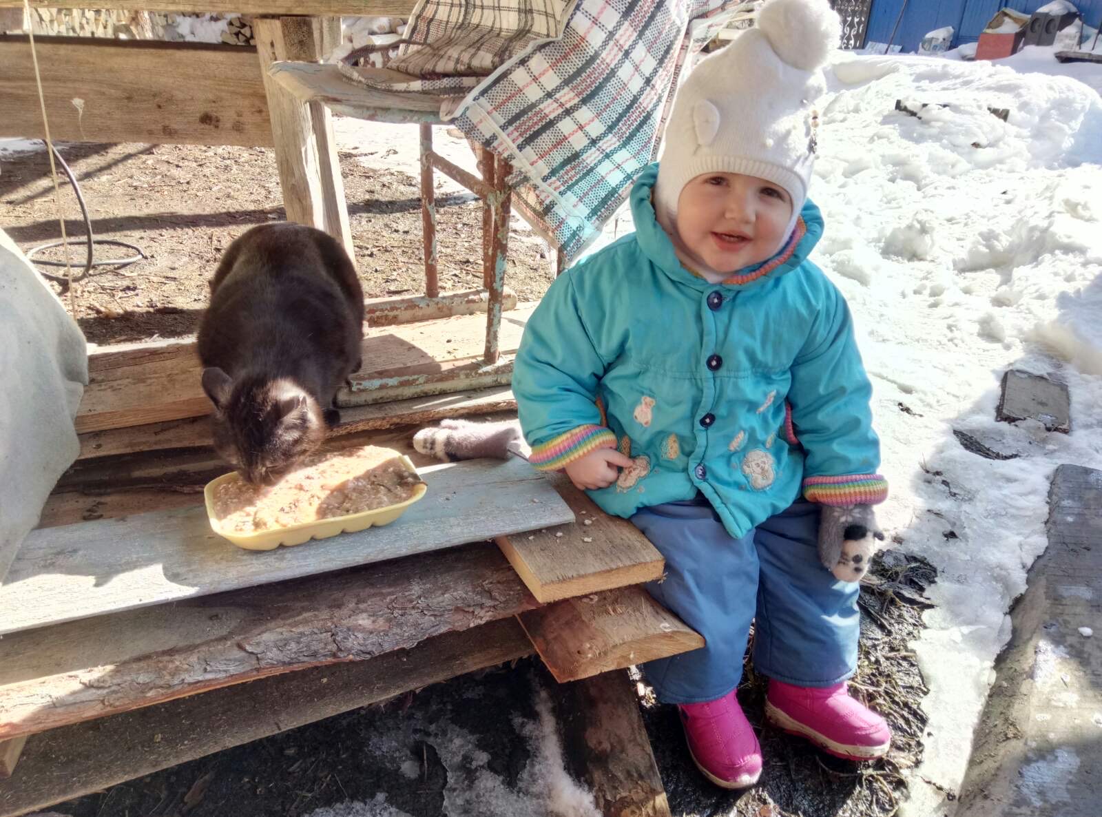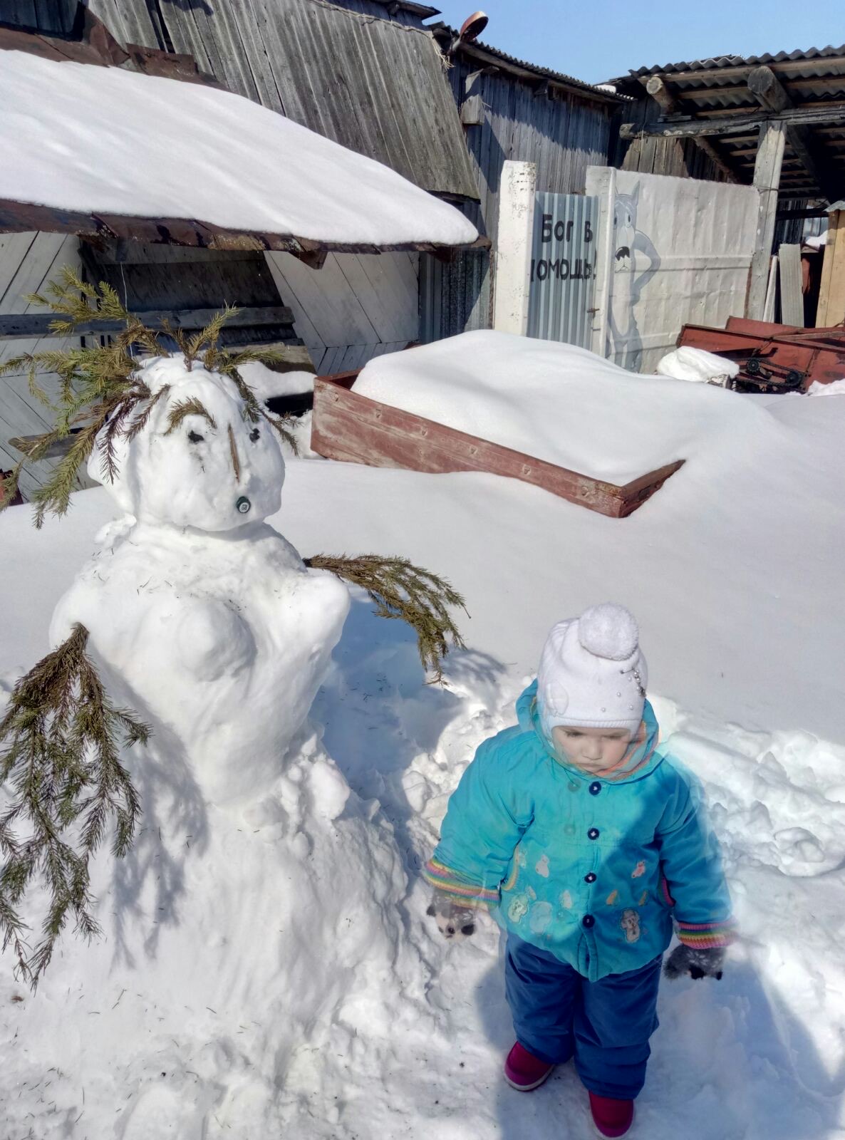 Гулять на улице сейчас нельзя, потому что опасно. Поэтому я сейчас живу у бабушки и дедушки в деревне, пока мои папа и мама работают. Здесь мы слепили из снега - снежную бабу, я покормила на улице кошку, а дома покаталась на лошадке.