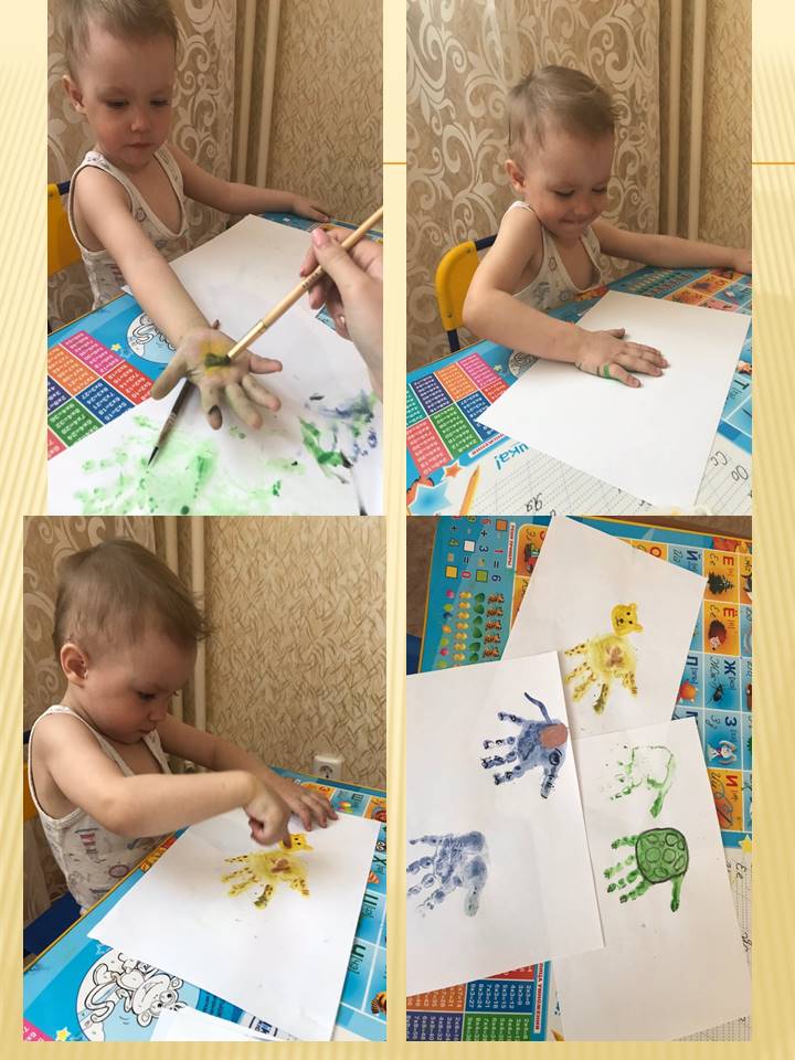 Работая ладошками или пальчиками, ребенок не только получает порцию радости от процесса, но еще развивает воображение, творческое и логическое мышление. В процессе рисования развивается мелкая моторика, а так же улучшается общая двигательная активность.
