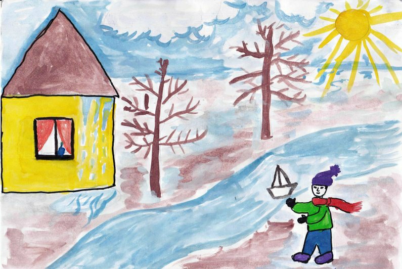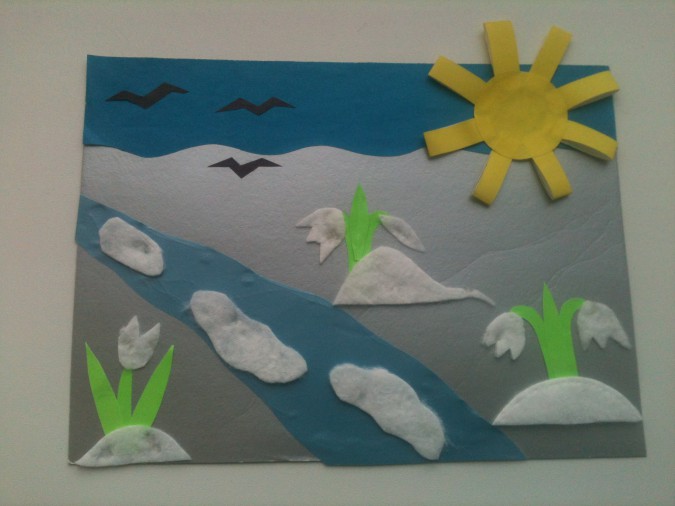 Дети и взрослые очень творчески отнеслись к поставленной задаче. Было нарисовано множество рисунков о весне, дети делали аппликации ледохода на реке.