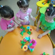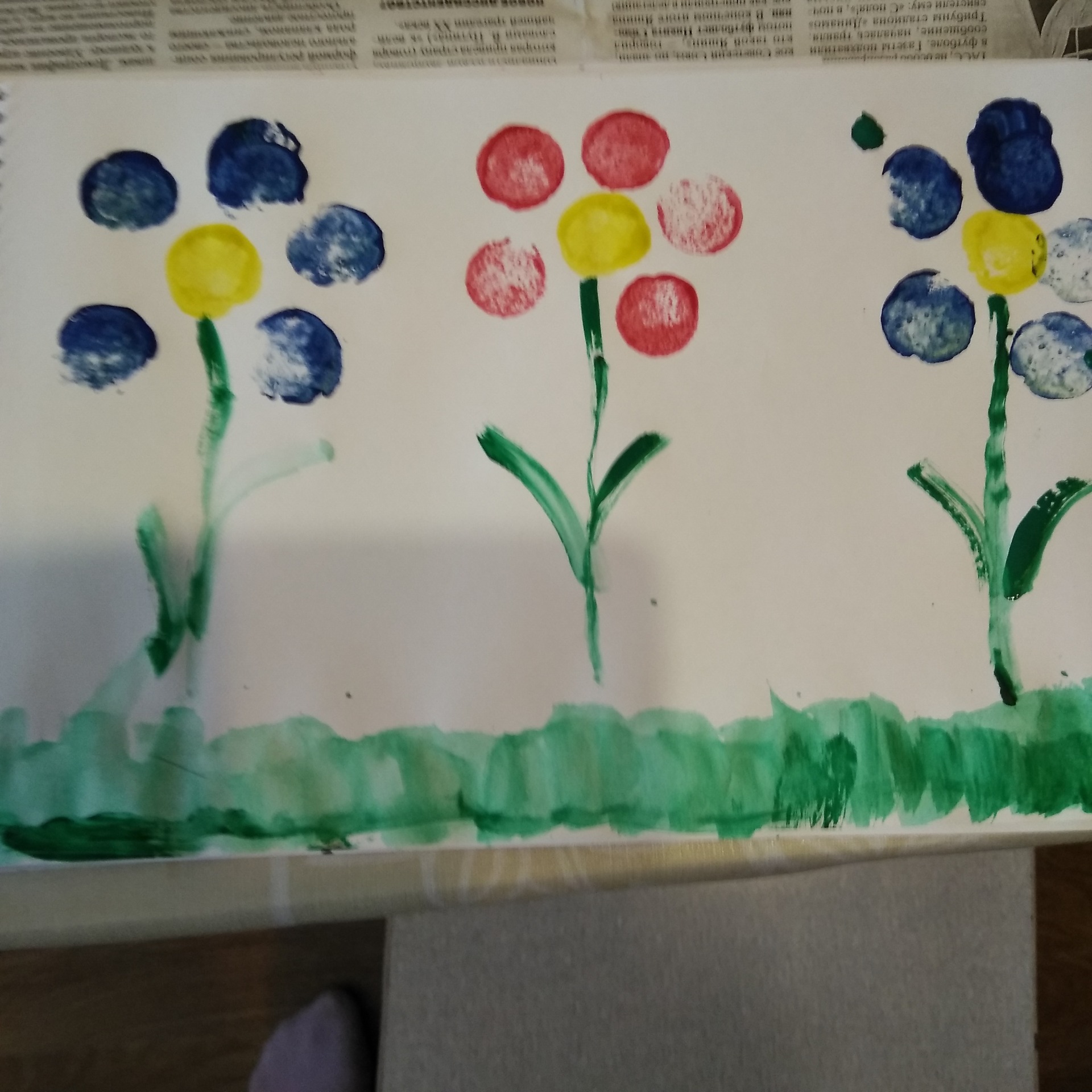 Заинтересовала детей игра «Цветочный сад». где дети собирали цветы на полянке. Через эту игру мы смогли закрепить с детьми основные цвета, мелкую моторику. А еще у нас получились вот такие необычные работы.