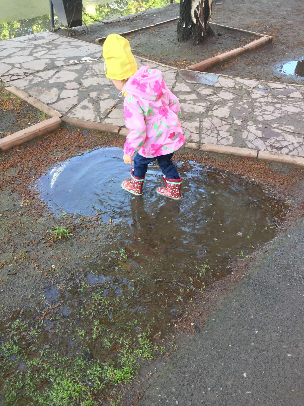 Поиграли в подвижные игры: «Весенняя прогулка», "Солнышко и дождик". Побродили по лужам, конечно же, надев резиновые сапоги.