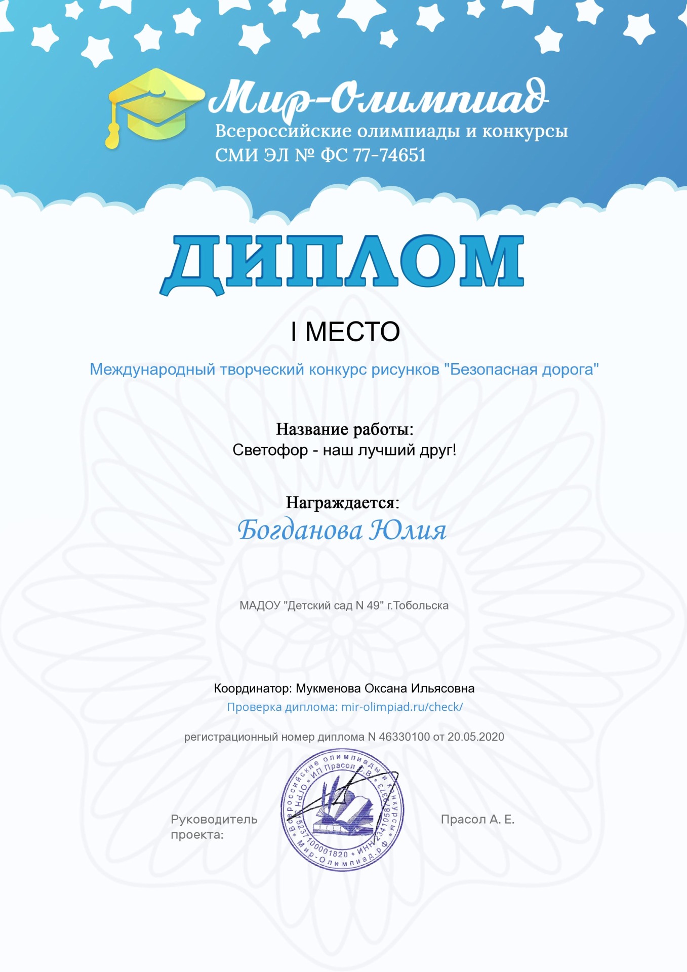 В рамках проекта мы изучали дорожные знаки, правила дорожного движения, мастерили поделки, запустили социально-значимую акцию «Пристегни самое дорогое», участвовали в III Всероссийском конкурсе рисунков по ПДД «Лето без ДТП» и в Международном творческом конкурсе рисунков «Безопасная дорога».