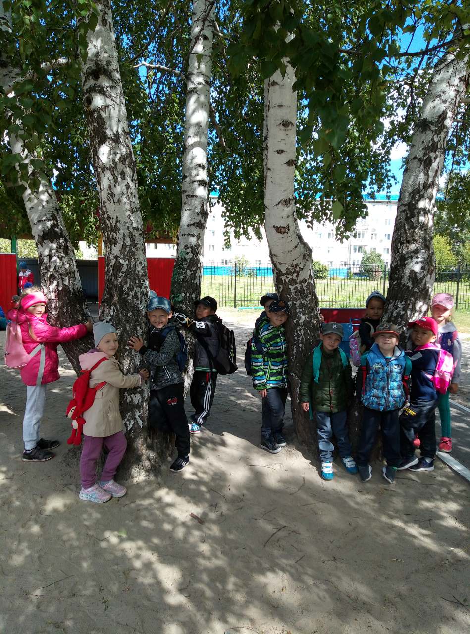 Мы березки все обняли, свежим воздухом дышали.