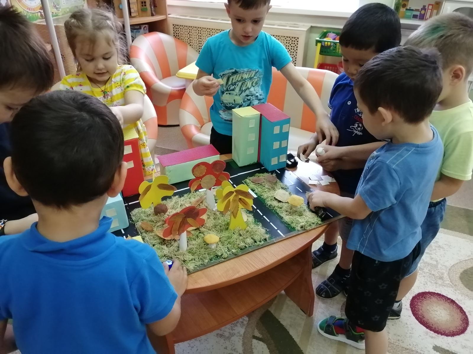 Чтобы как можно дольше сохранить эти прекрасные впечатления воспитанники старшей группы «Дюймовочка» решили перенести осеннюю красоту родного города в свою группу.