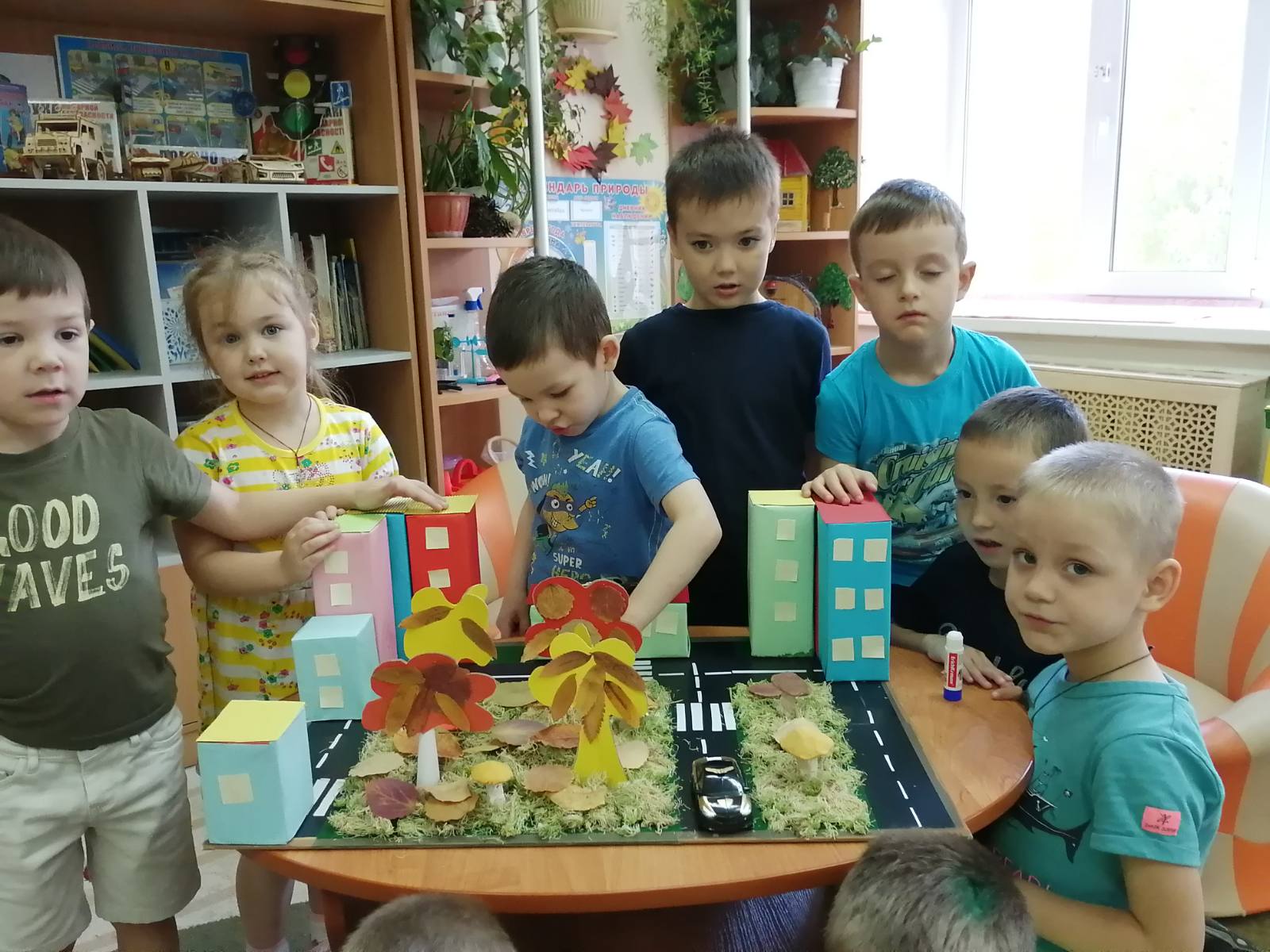 Рисуют на тему «Осенние настроение», лепят «Дары осени», трудятся над созданием макета «Осень в родном городе». Это позволяет развивать фантазию, способствует развитию моторики, поднимает настроение.