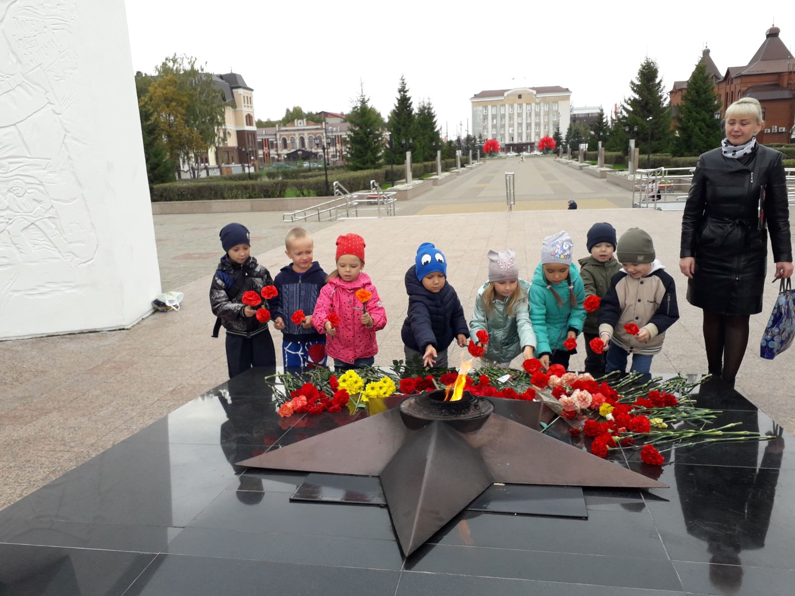 Ребята почтили память погибших минутой молчания, возложили цветы к вечному огню, прочли стихи в честь уважения к воинам-защитникам и труженникам тыла-наших семейных героев. Всем тем, кто приближал Победу.