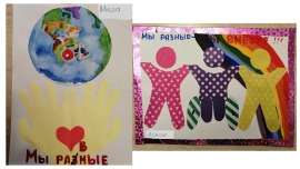 Данил и Миша тоже приняли участие в детском конкурсе рисунков на тему "Мы разные, но мы вместе!". Они использовали смешанные техники работы: рисунок и аппликация.