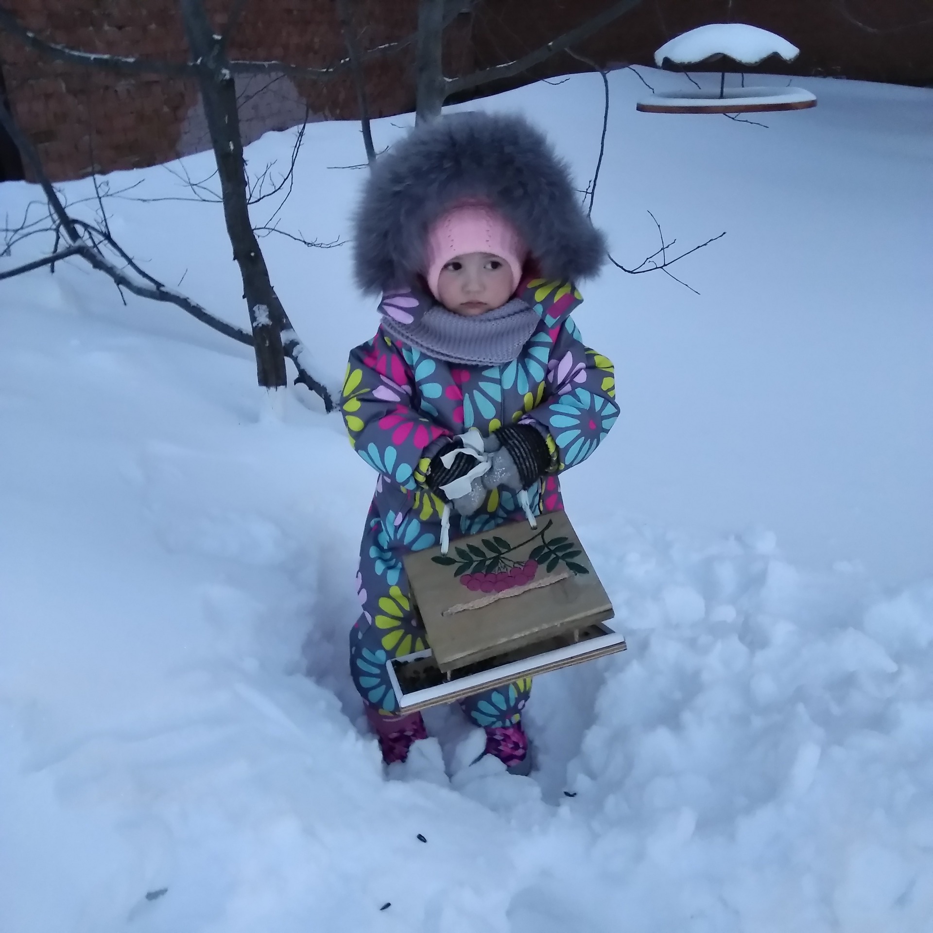 Ульяна с папой сделали кормушку для птиц – висит на улице на дереве, Рома помогает маме мыть посуду, брату лепить снеговика, папе расчищать снег.