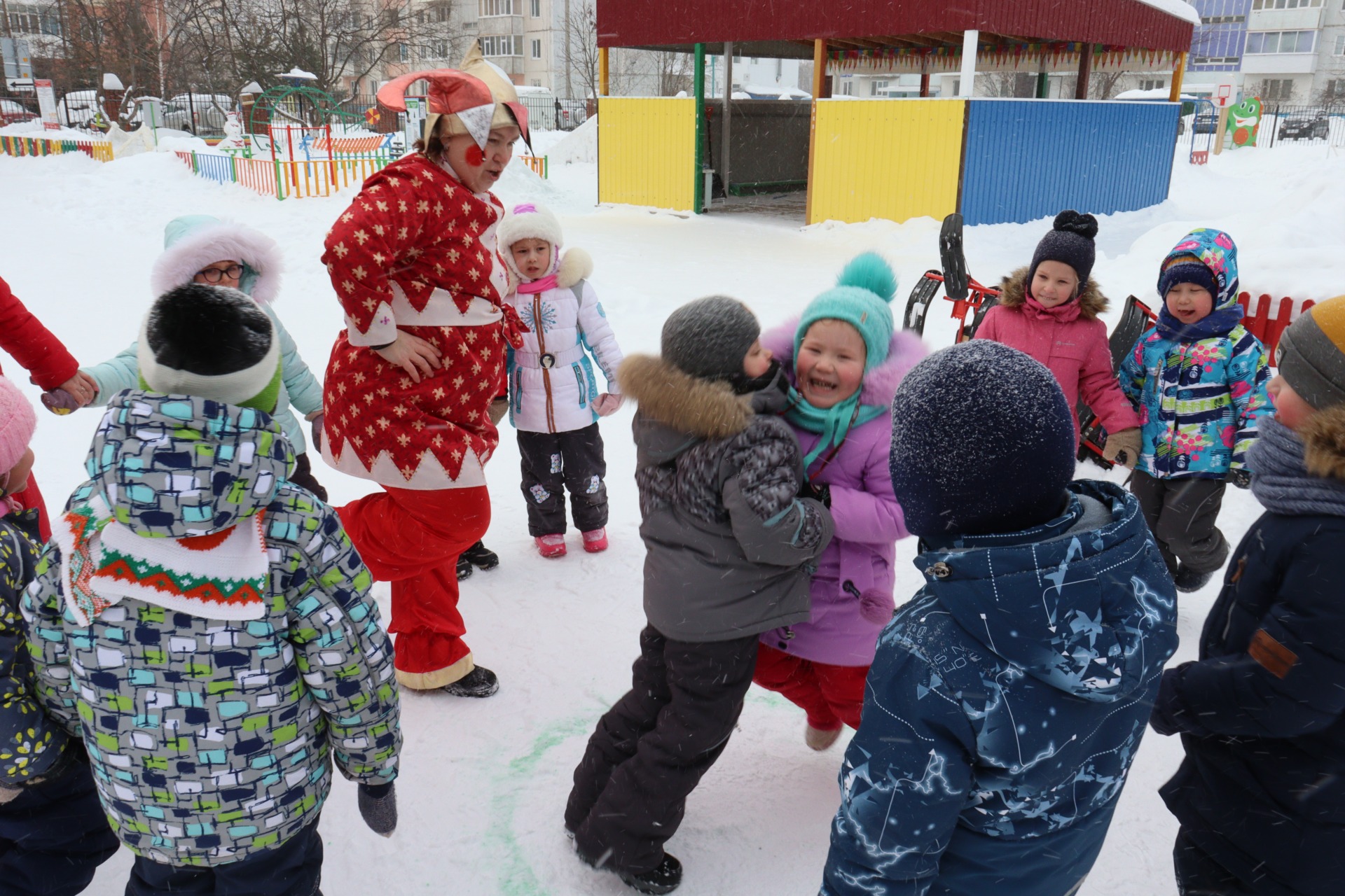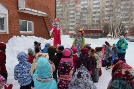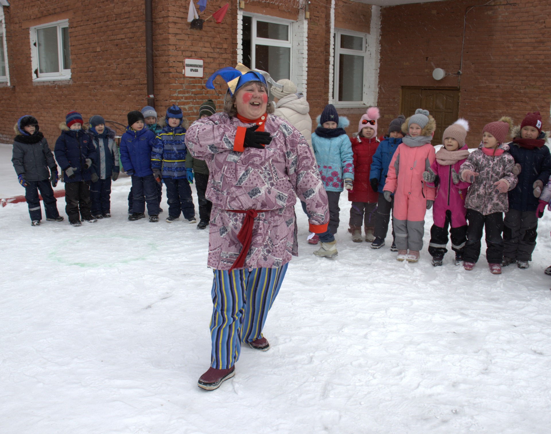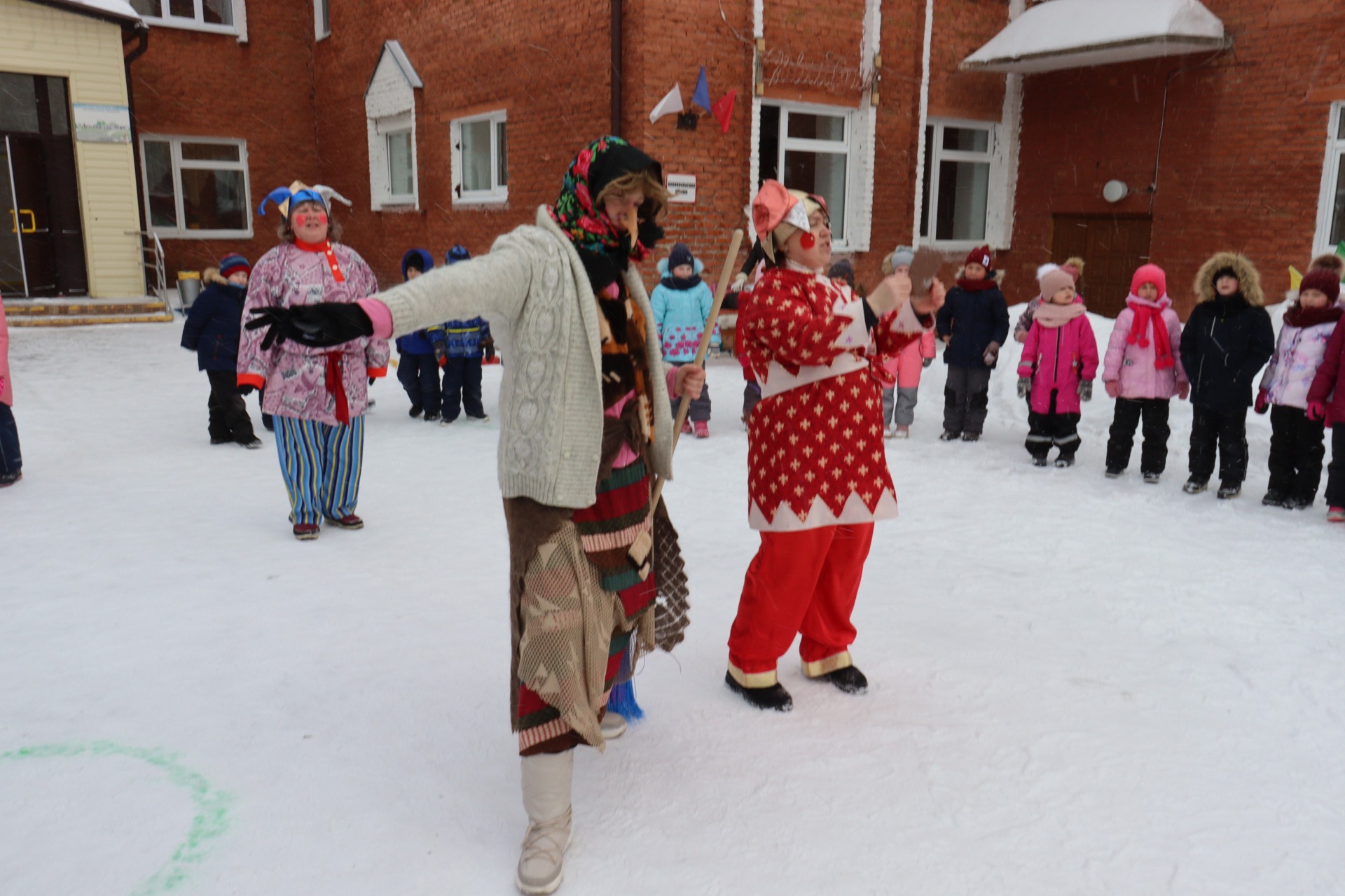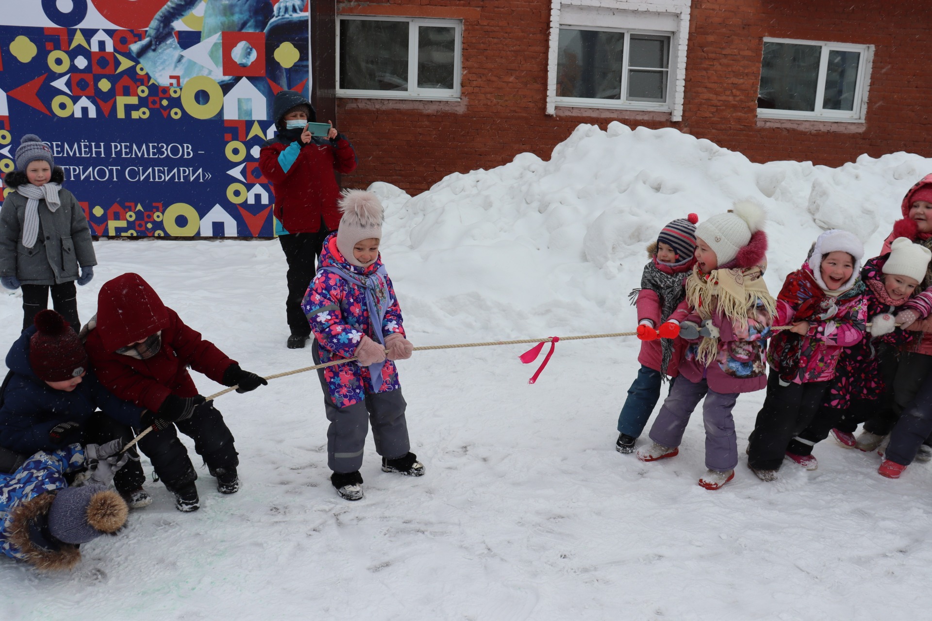Масленицу открыли русскими народными забавами: «Катание на саночках», «Перетягивание каната» и «Петушиные бои».