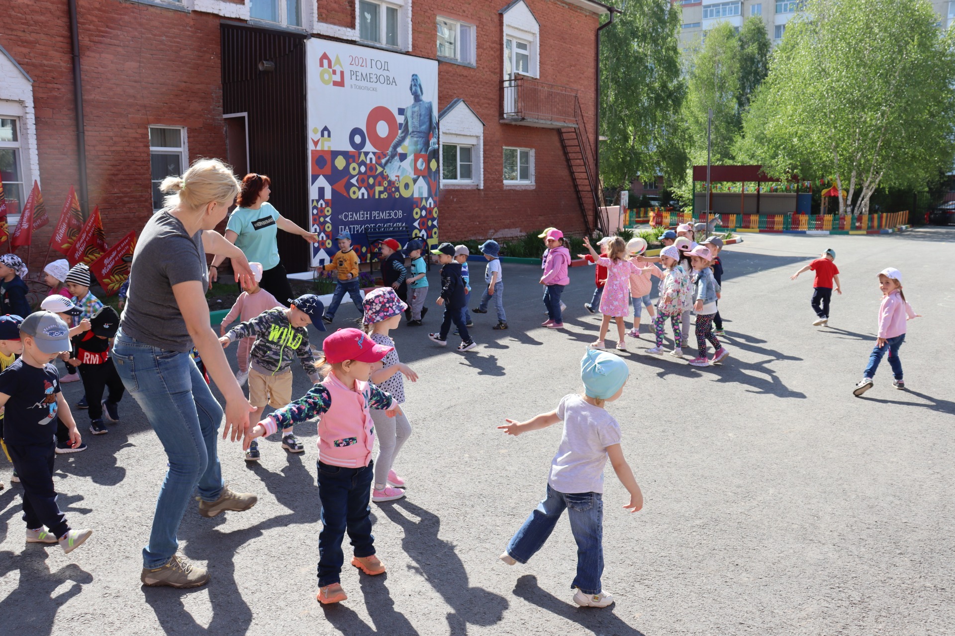 Ребята отправились на весенний луг, рассказали, почему появилась зеленая трава, яркие цветы, листья на деревьях. Танцевали как медвежата, прыгали по кочкам как зайчата, летали как бабочки, пели песни и водили хороводы.