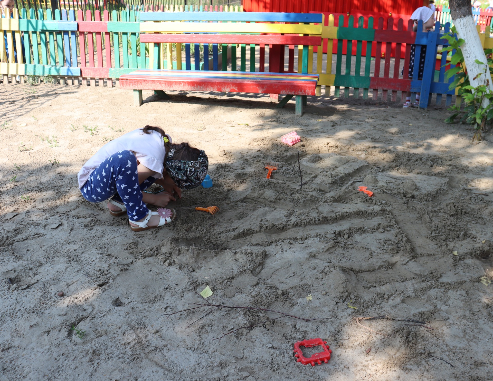 Значительная часть активности связана с проверками окружающих предметов на прочность, гибкость, способность к превращениям. Этому способствуют самостоятельные игры на игровом участке с различным выносным (формочки, посудка, лопатки, грабли) и бросовым материалом (веточки, камушки, песок, досочки).