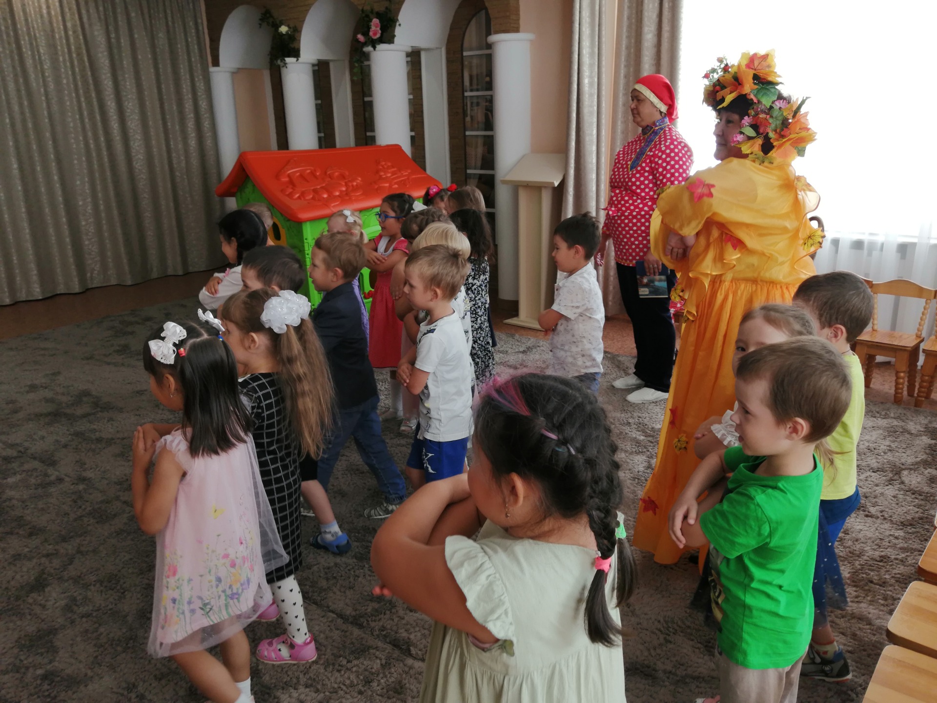 В гости к ребятам пришли Осень и Гномик Умник, с которыми дети танцевали, играли, отгадывади загадки, рассказывали стихотворения, с удовольствием и радостью пели.