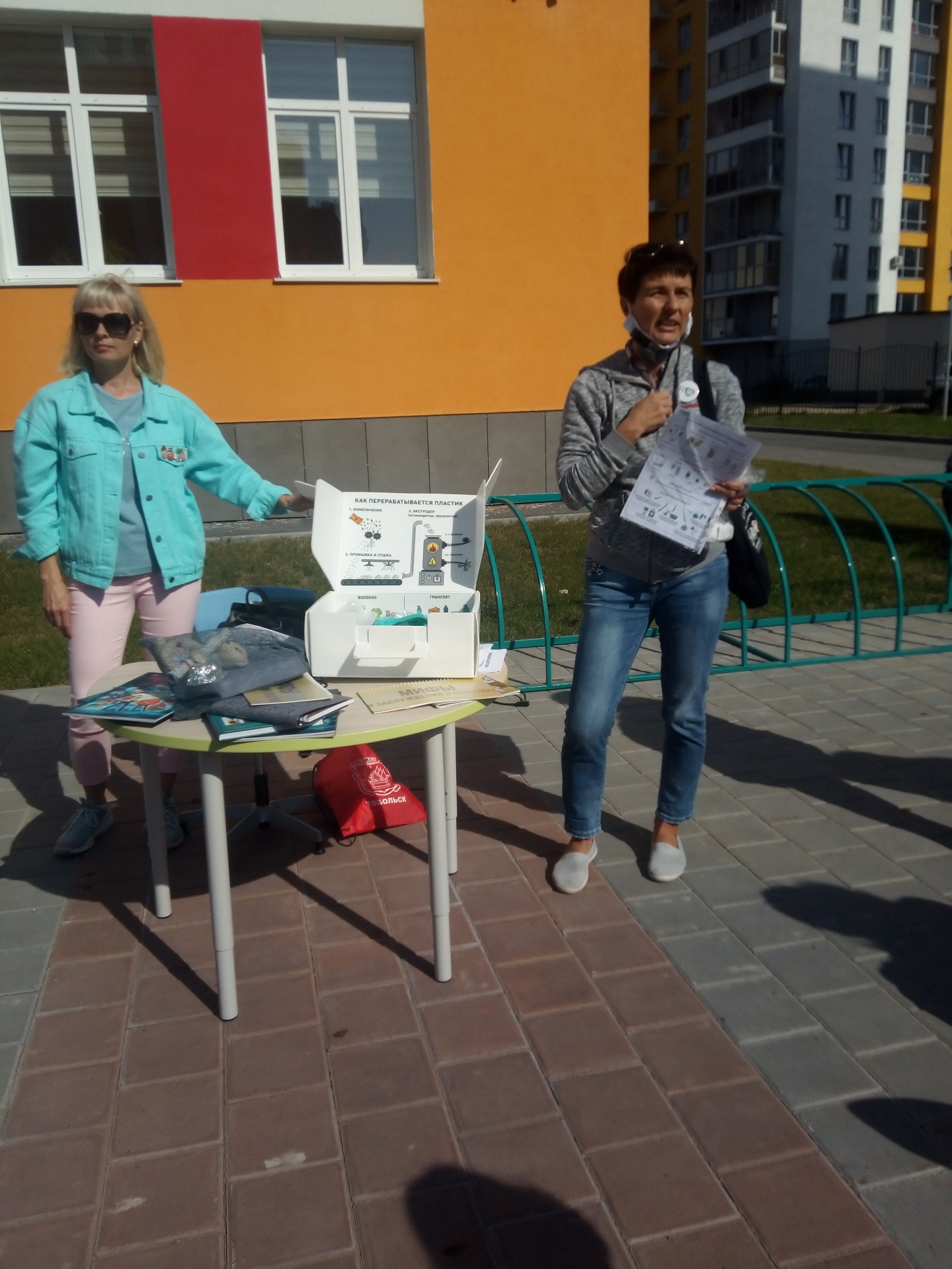 Пополнив свои знания о защите окружающей природы, о том, что могут изготовить из переработанного пластика, ребята решили привлечь к этой акции как можно больше родителей и детей, для этого они активно раздавали листовки с местом проведения акции, рассказывали, что можно принести, и зачем. Приглашали всех прийти на ЭКО точку, которая была на территории 16 школы, на которой организованы образовательно – развлекательные мероприятия.
