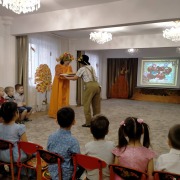 Вместе с Осенью воспитанники старших и подготовительных групп отправились в увлекательное путешествие в осенний лес и на огород к фермеру Дяде Ване. Помогли ему собрать урожай, сворить разные блюда из овощей и фруктов, спасли от нашествия гусениц и узнали о том, что гусеницы на зиму превращаются в куколку.