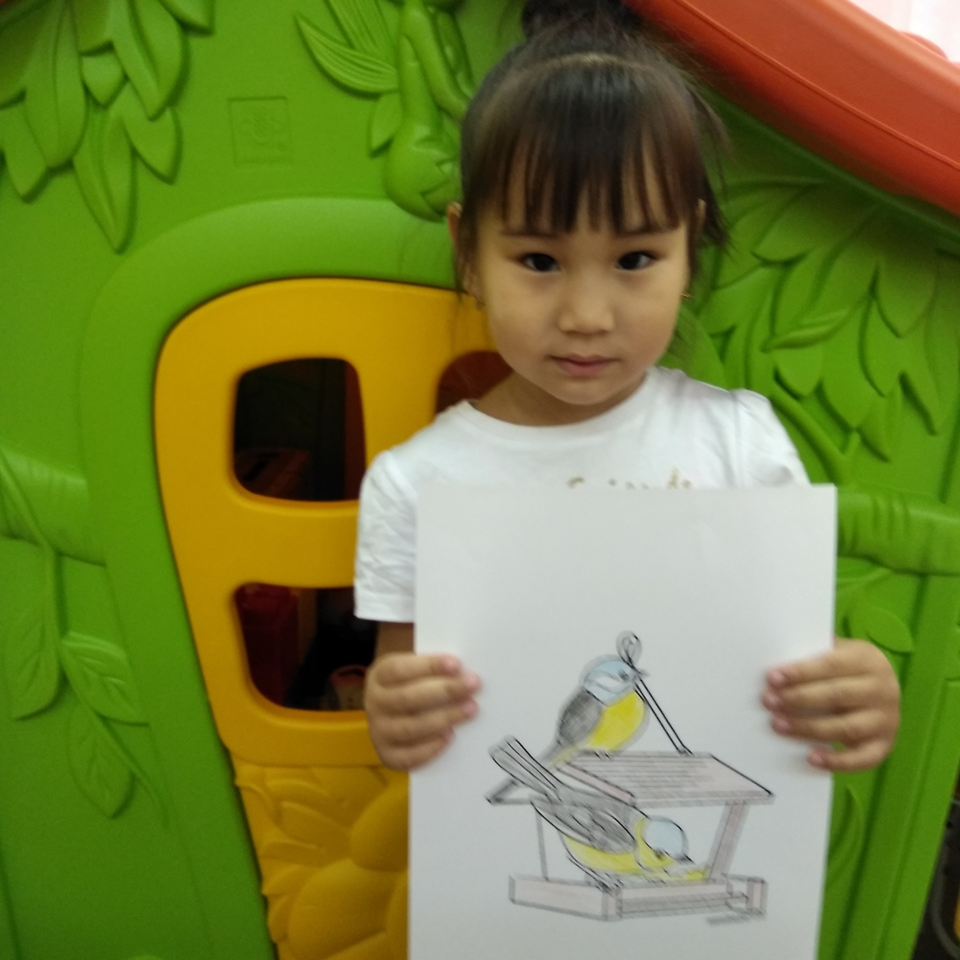 На наши кормушки прилетели: синички, голуби, воробьи – это мы увидели из окна нашей группы. А еще мы увидели, как все птички быстро летают расправив крылья, прыгают с ветки на ветку, клюют семечки. Чтобы синички не погибли , когда на улице холодно мы их будем подкармливать : хлебными крошками, семечками.