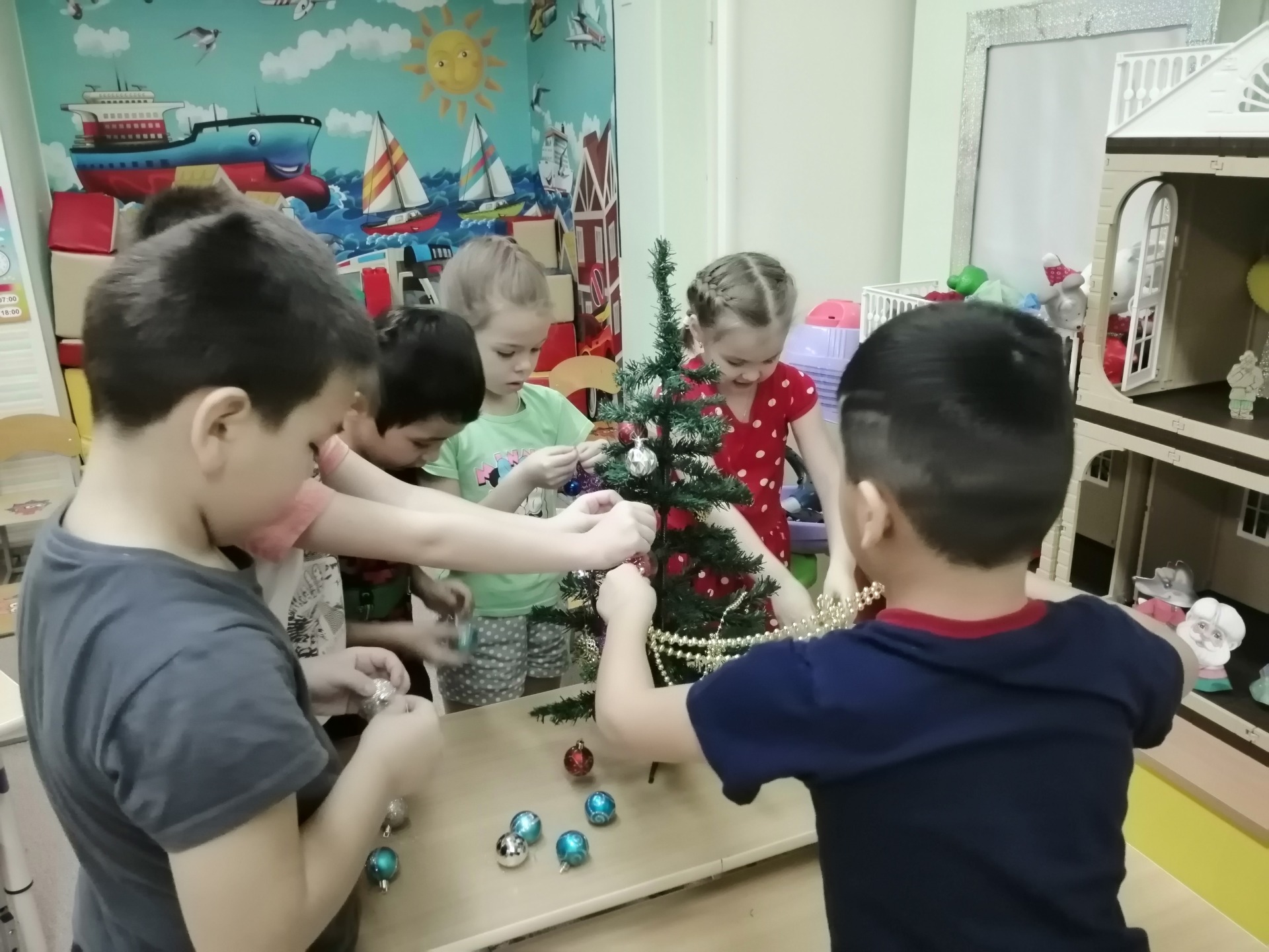 В нашей группе «Дюймовочка» уже с первых дней декабря царит предновогоднее настроение, мы с детьми украсили окна, группу и нарядили ёлочку. Меленькие дизайнеры с удовольствием включили свою фантазию.