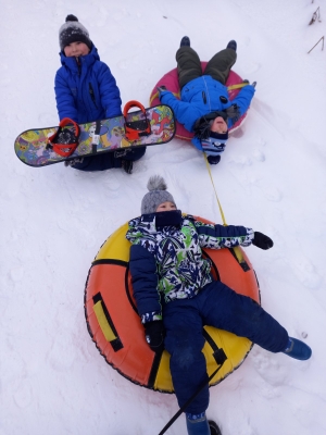 Родители и дети группы "Ромашка" поделились своими впечатлениями об активном досуге в зимние каникулы: катались на ватрушках, на лыжах, на горках, санках, снегокатах, играли в снежки, барахтались в снегу.