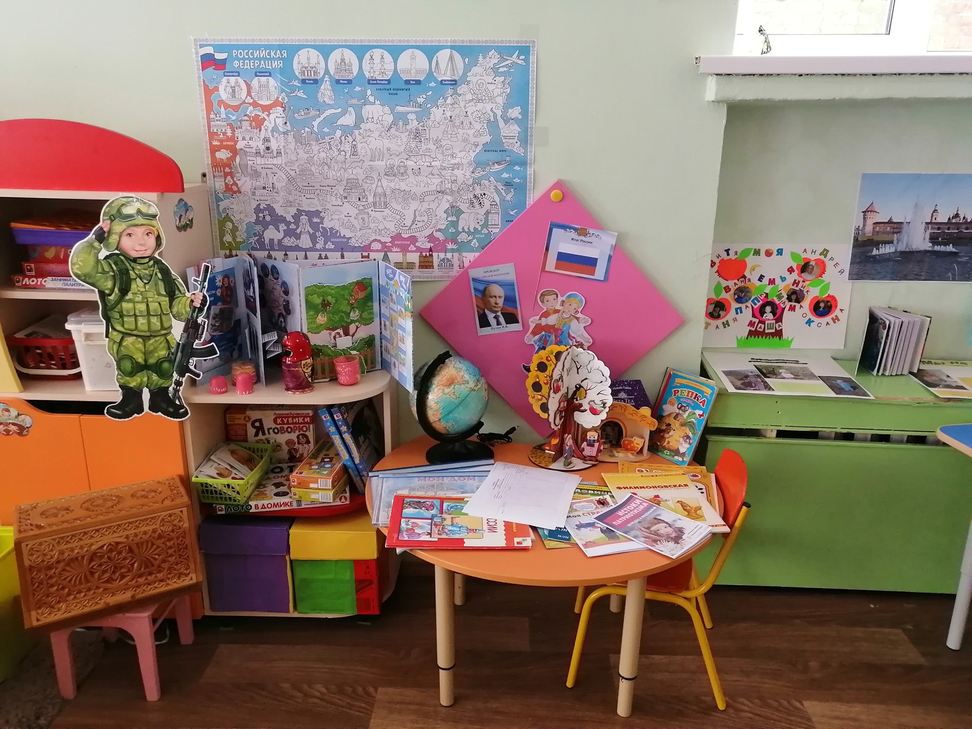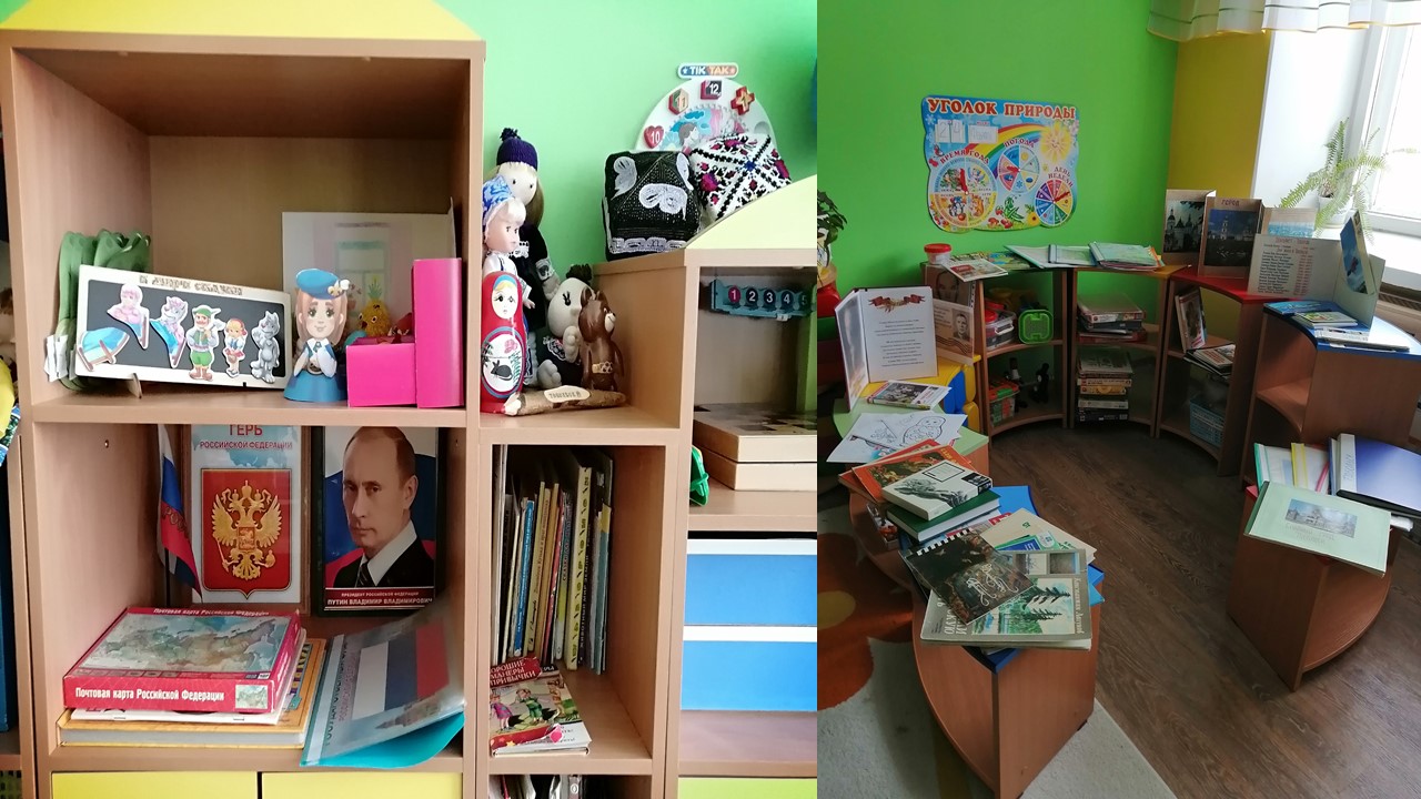 Согласно годового плана, в целях создания условий для воспитательно-образовательной работы с детьми по региональному компоненту, в детском саду прошел смотр-конкурс уголков краеведения и патриотического воспитания "Уголок России-Отчий дом".
