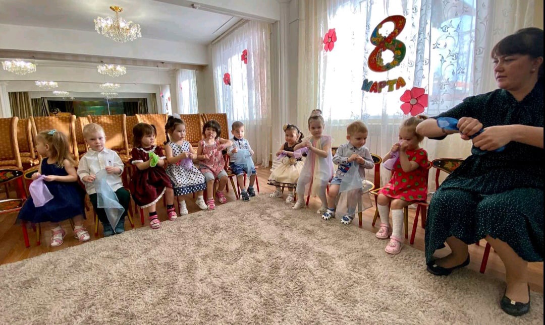 Малыши очень старались: усердно подпевали песенки, неуклюже- мило кружились в танце, кропотливо- тщательно собирали букет.